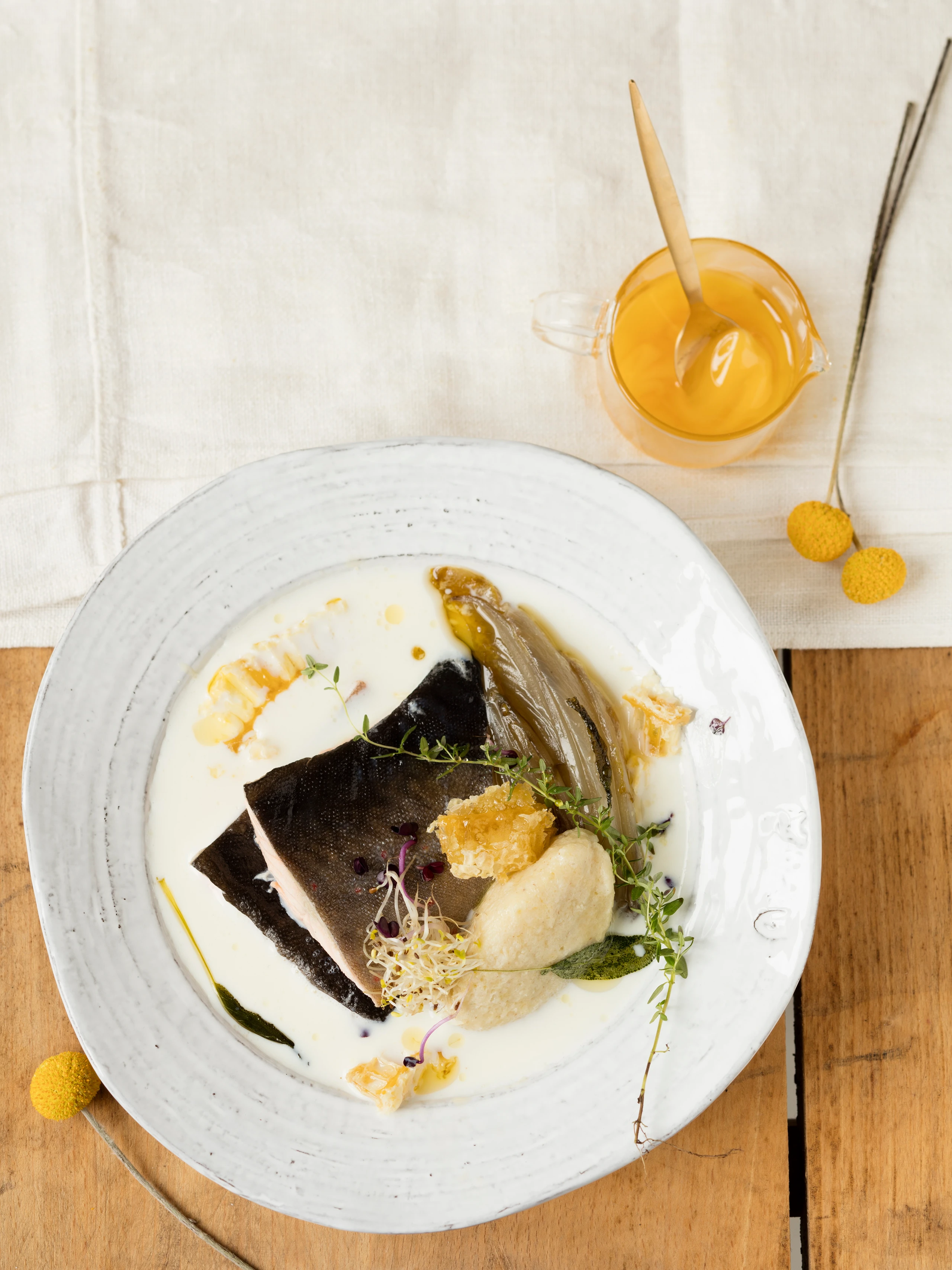 Kalbsrücken mit Spinat, Kohlrabi und Pilzen