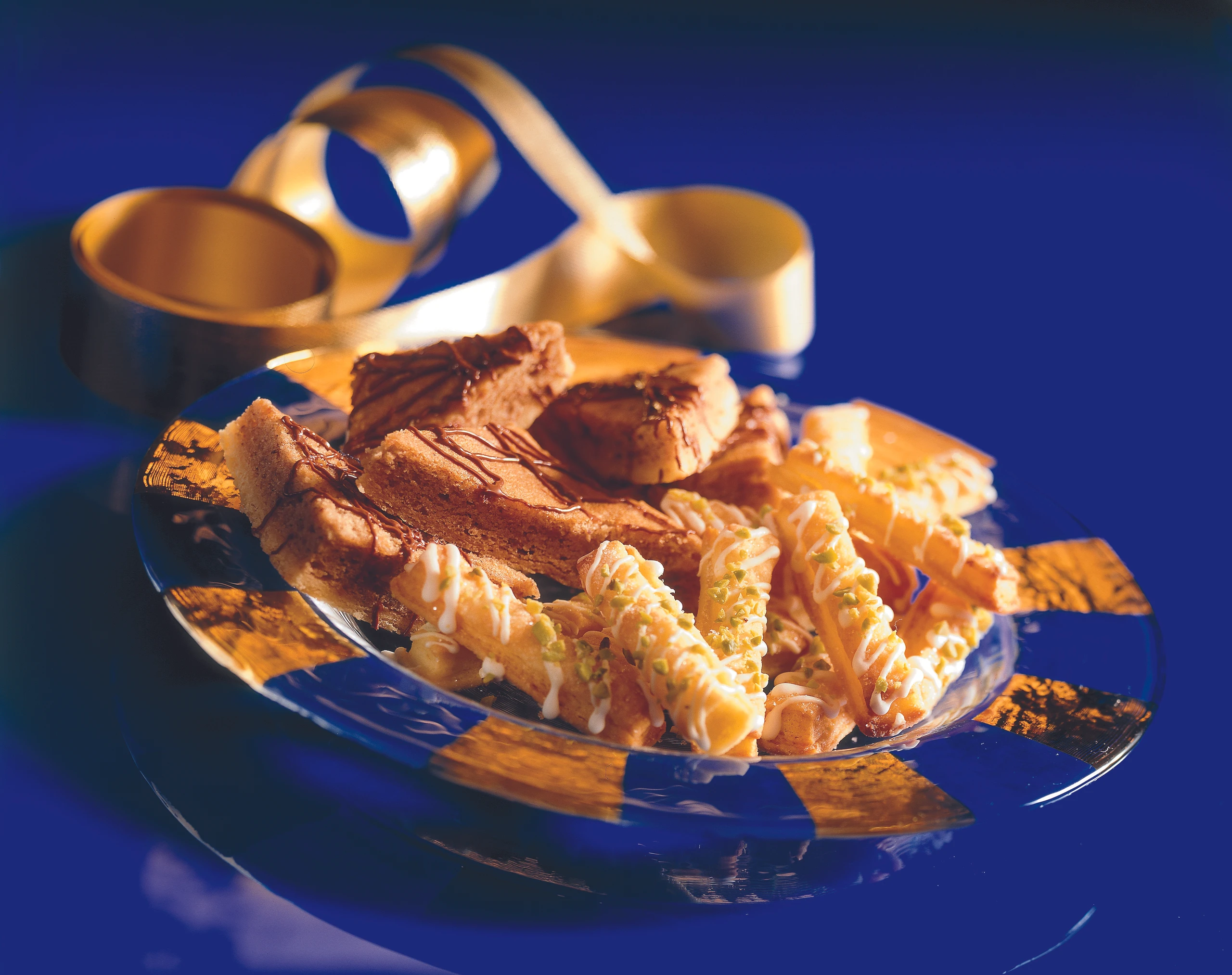 Marzipan-Ingwerkugeln und Lebkuchenröllchen