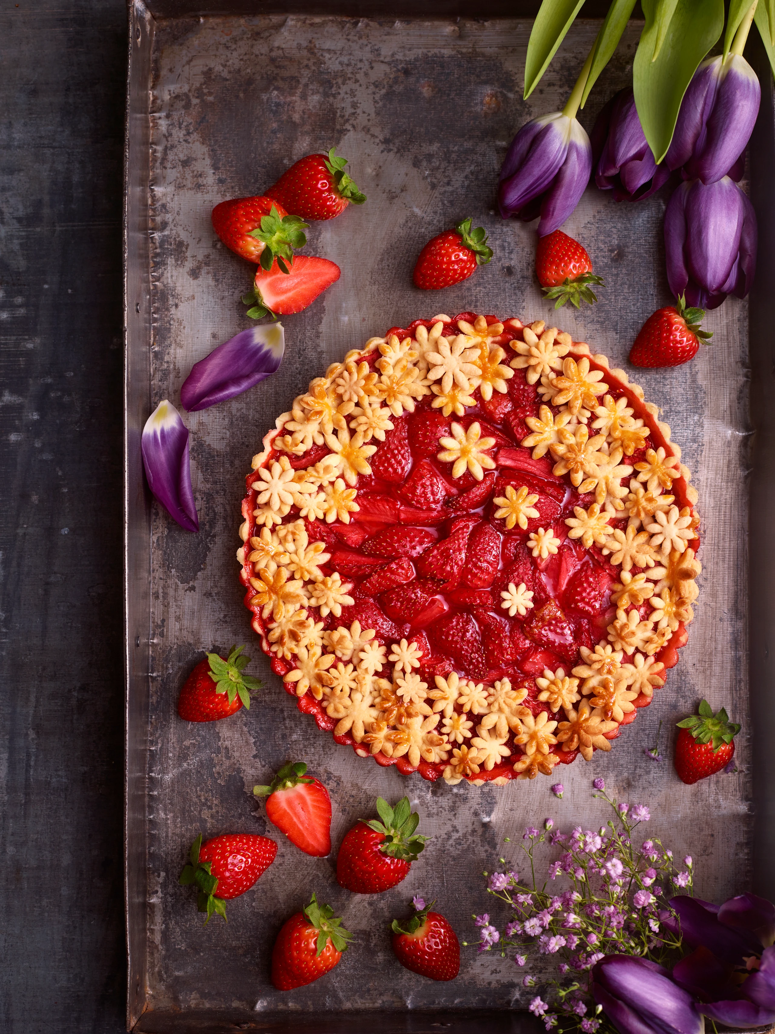 Erdbeer-Pie mit Blümchen