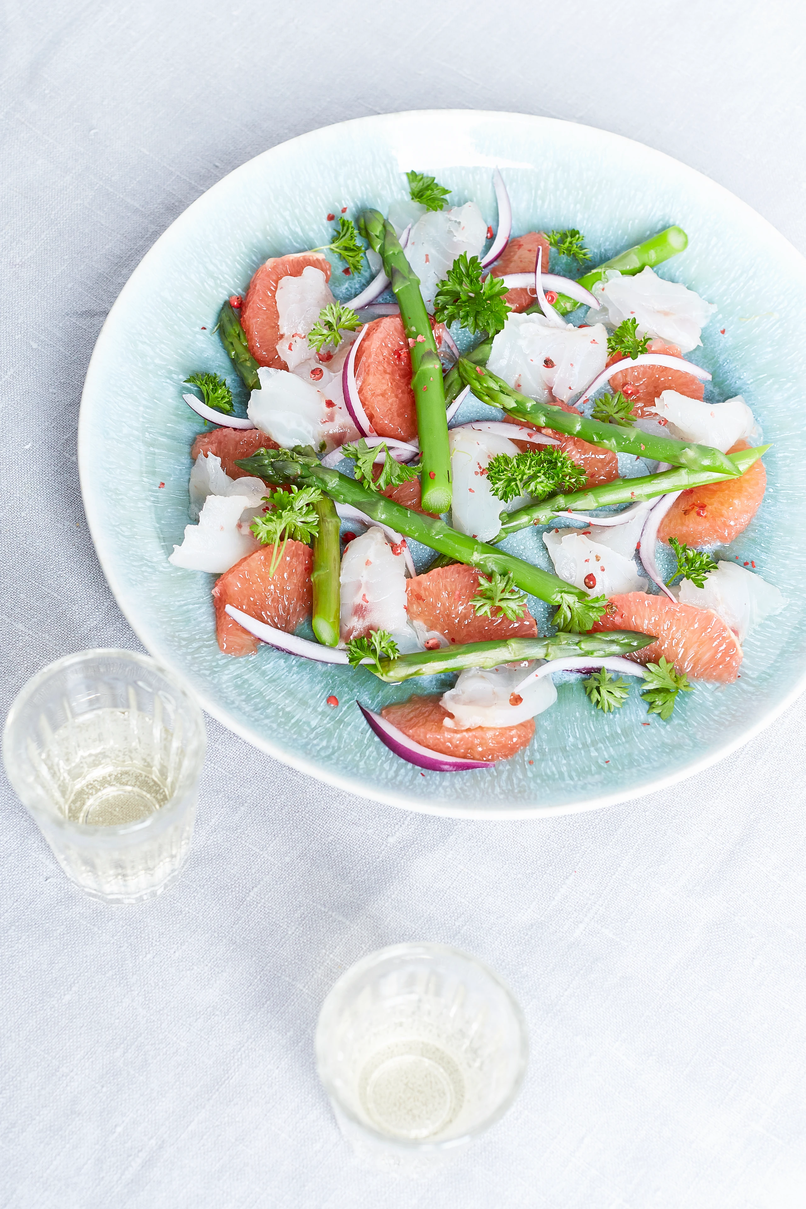 Ceviche mit grünem Spargel und Grapefruitfilets