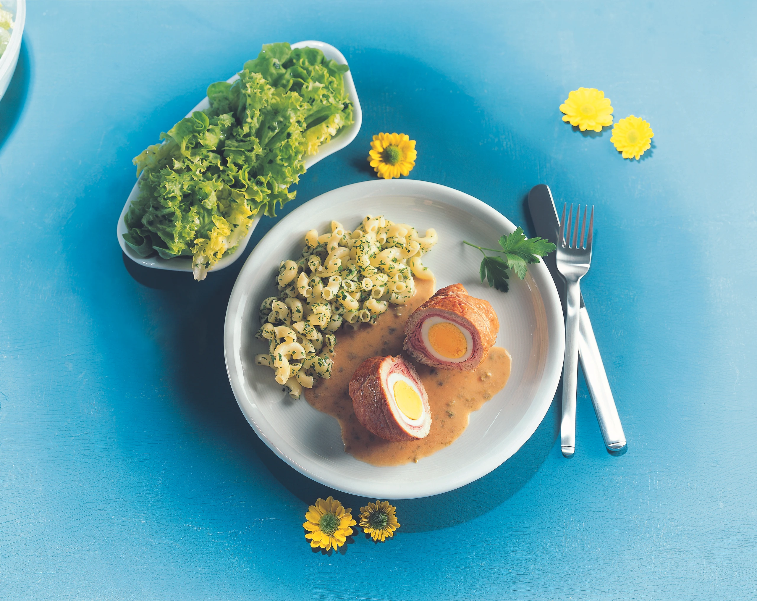 Schwalbennester mit Kapernsauce und Kräuter-Hörnchen