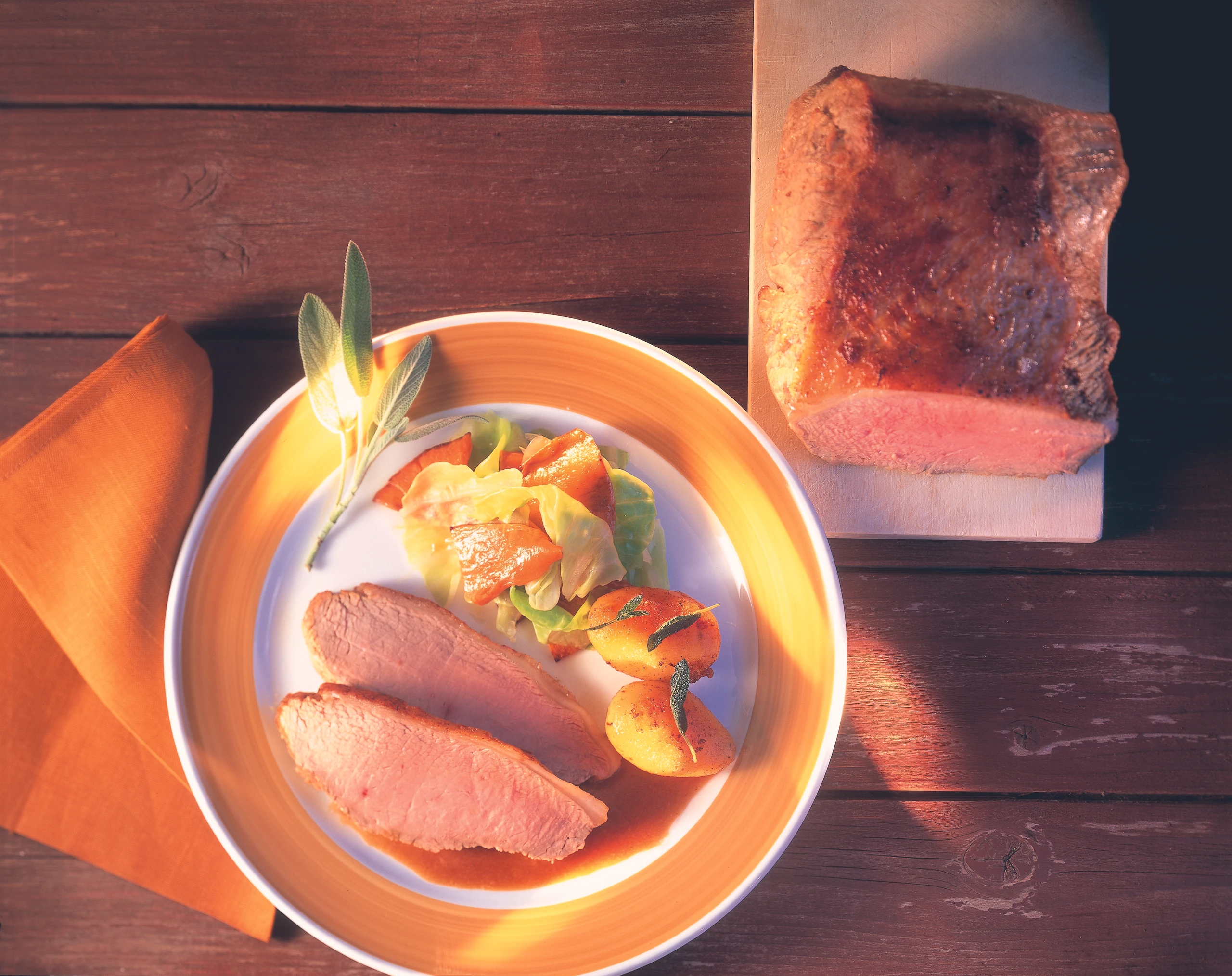 Kalbsrückensteaks im Champignonfond mit Erdäpfellaibchen