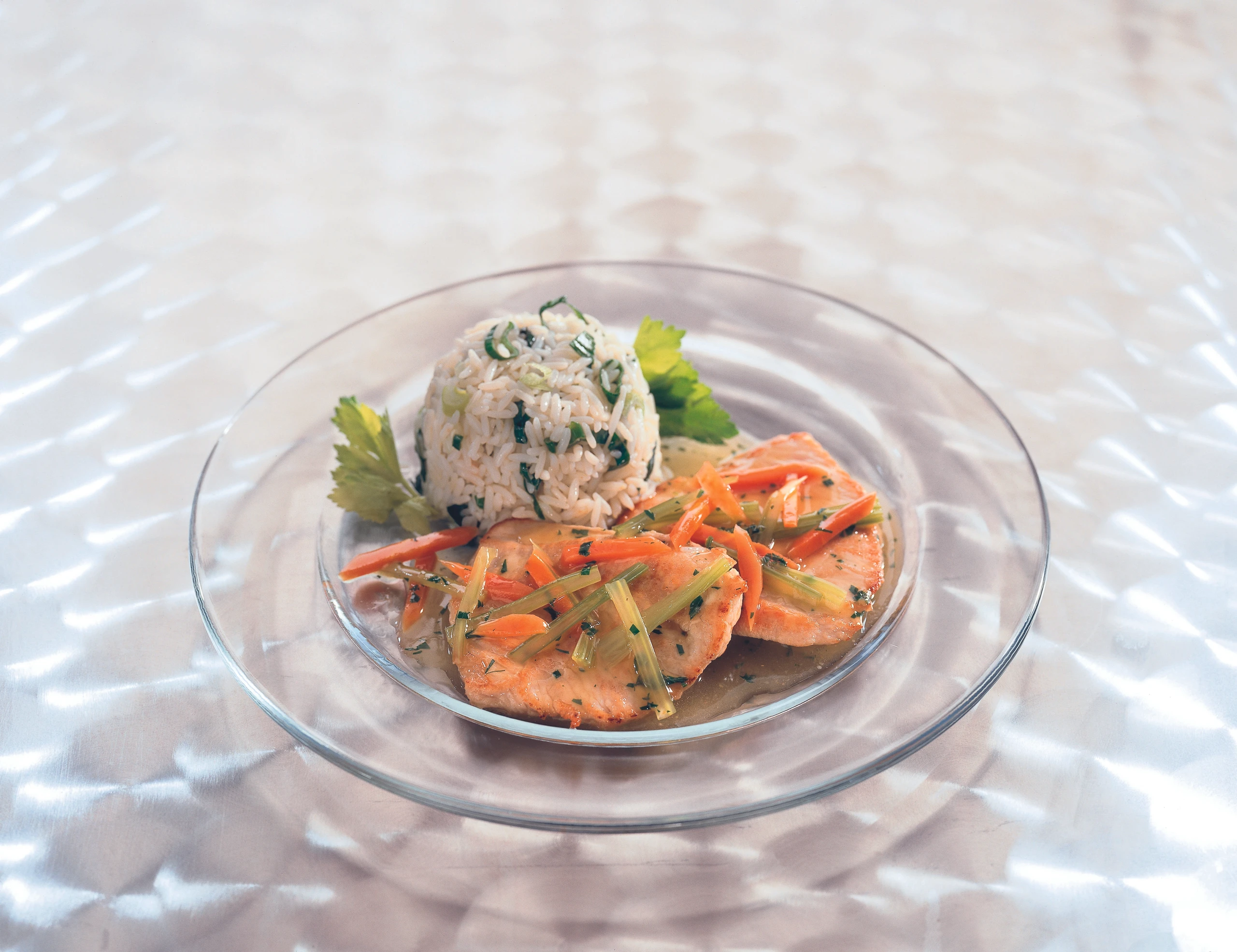 Erdäpfel-Sauerampfersuppe mit Räucherlachs