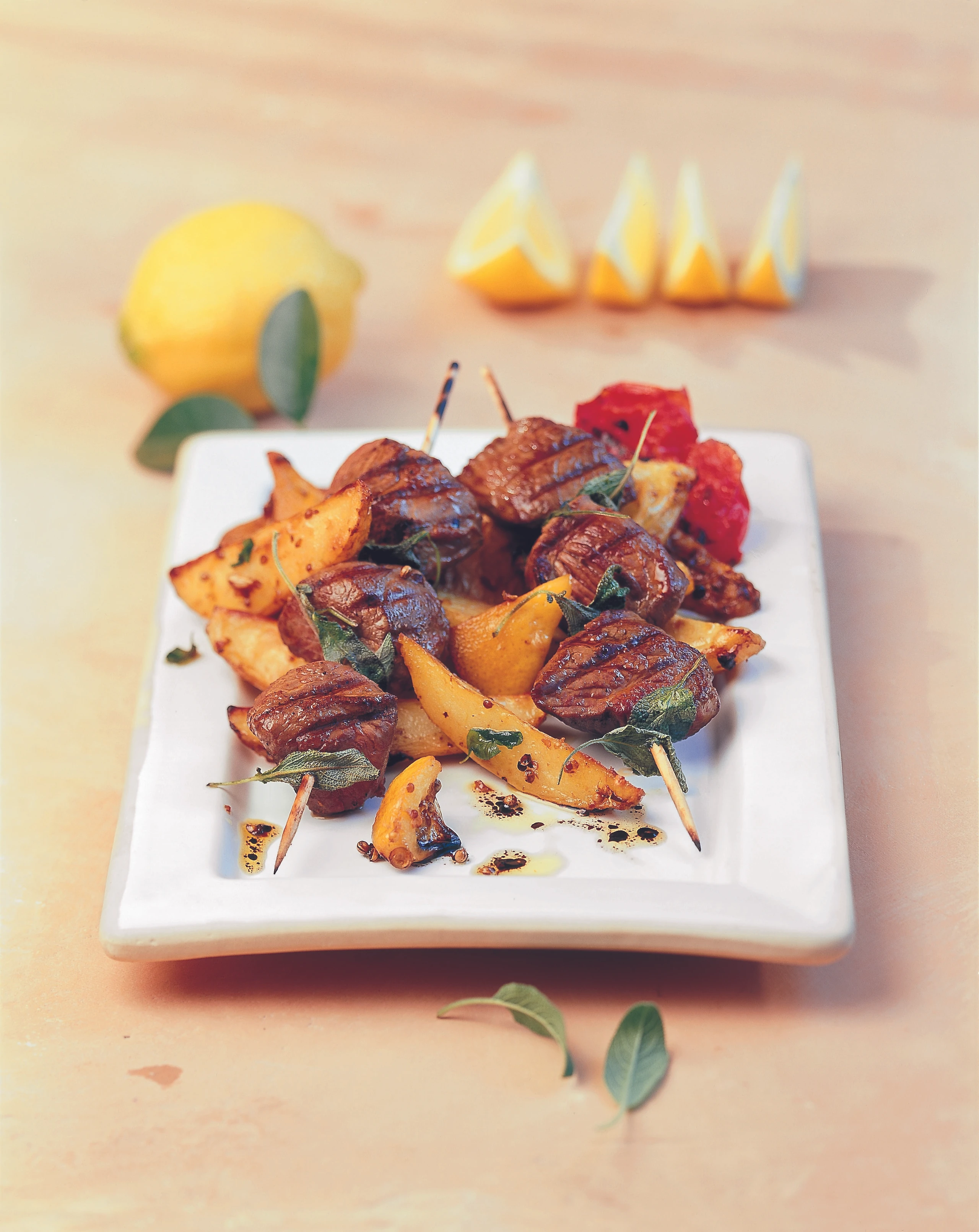 Griechische Lammspieße mit Zitronen-Erdäpfeln und Rösttomaten