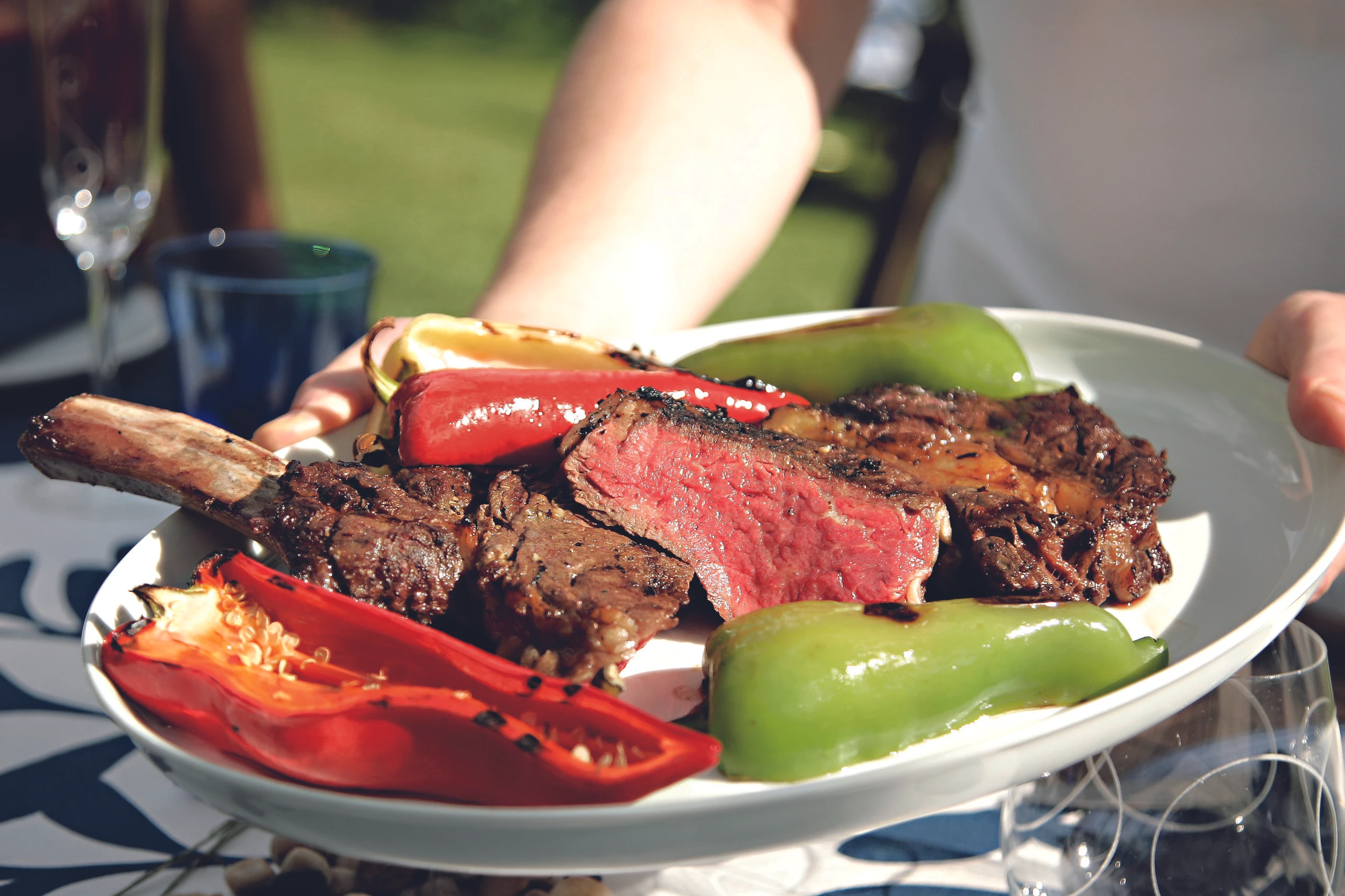 Zucchini-Paradeiser-Spieße mit Erdnuss-Joghurt-Dip