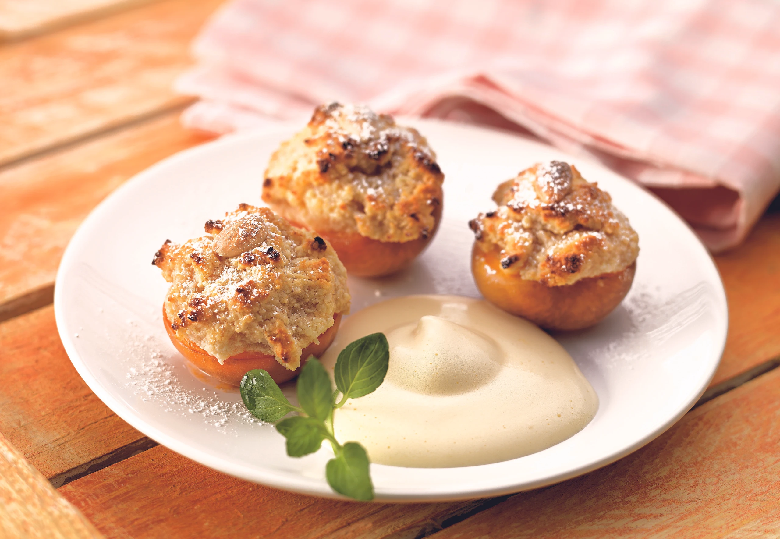 Gefüllte Marillen auf das Backblech setzen und im Rohr (mittlere Schiene) ca. 15 Minuten backen.