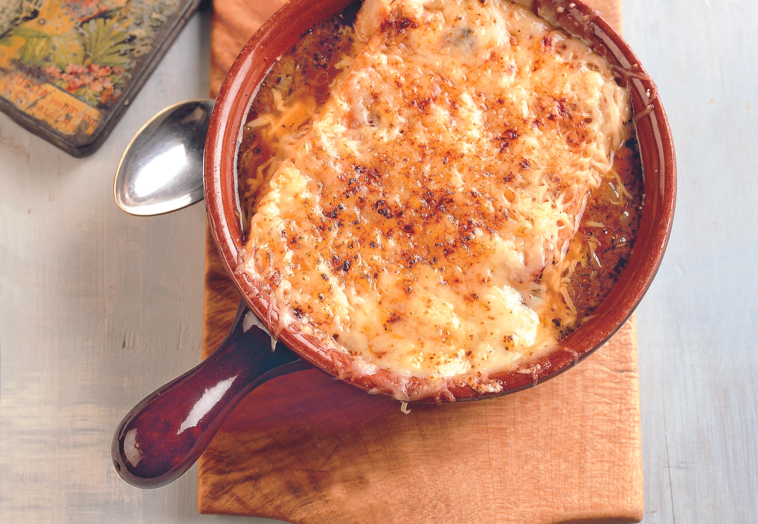 Soupe à l'oignon: Überbackene französische Zwiebelsuppe