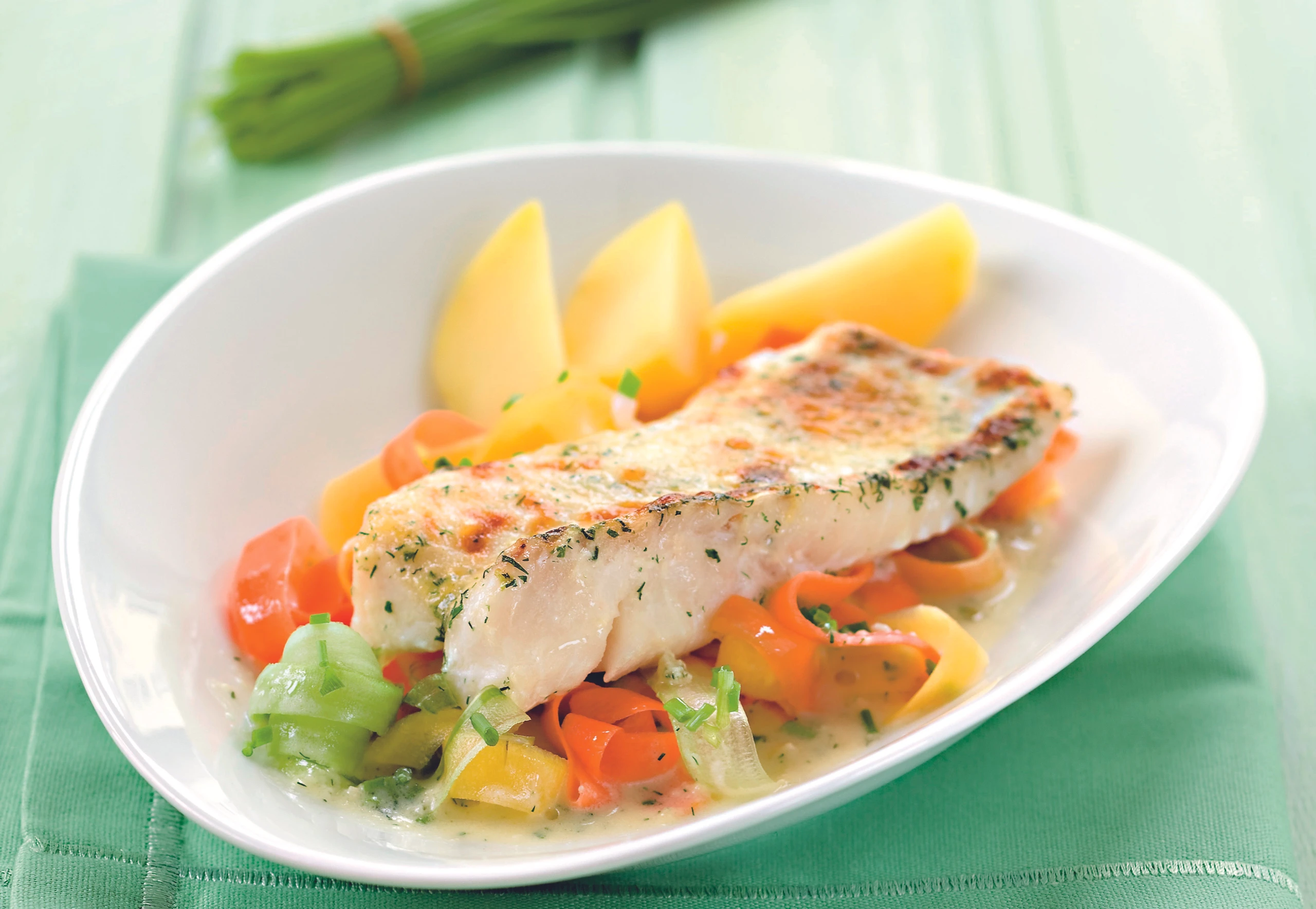 - Selleriegrün hacken. Fischfilets mit dem Gemüse anrichten und mit Selleriegrün bestreuen.