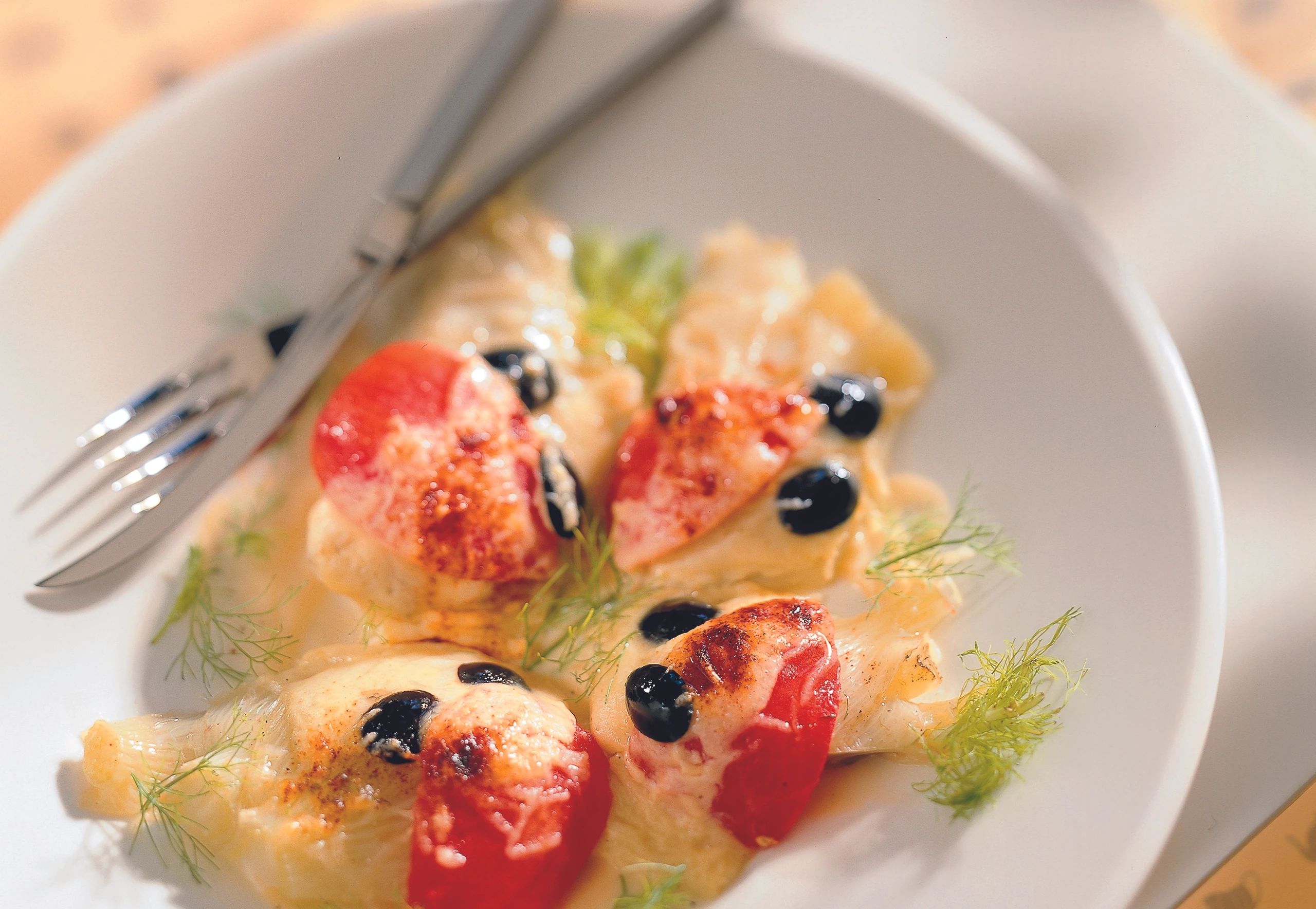 Überbackenes Fenchel-Paradeisergemüse mit Oliven