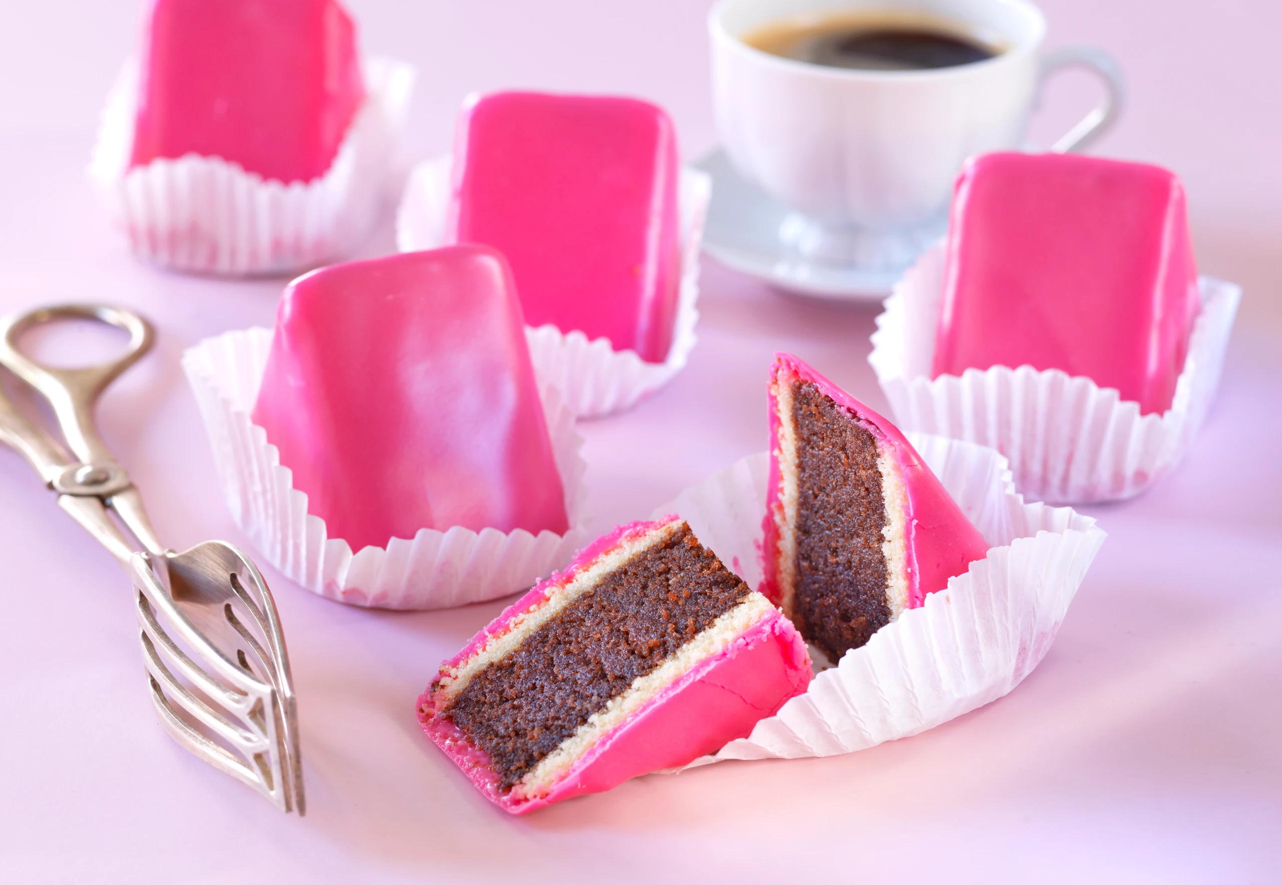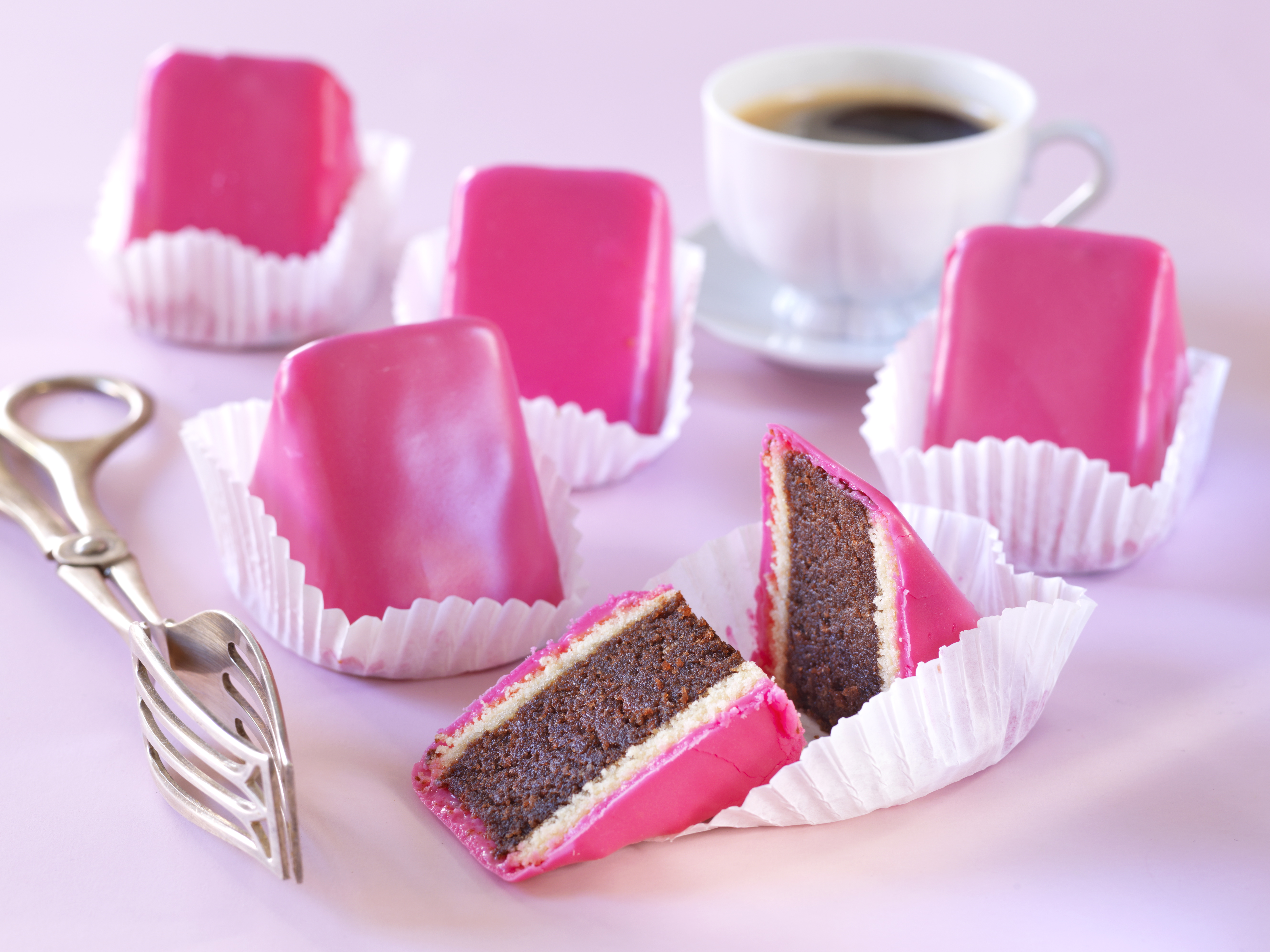 - Kuchen in 21 Dreiecke schneiden. Fondant über Dampf erwärmen und mit der Lebensmittelfarbe mischen. Kuchenstücke auf ein Kuchengitter setzen, mit Fondant übergießen und zum Festwerden der Glasur für ca. 1 Stunde kühl stellen.