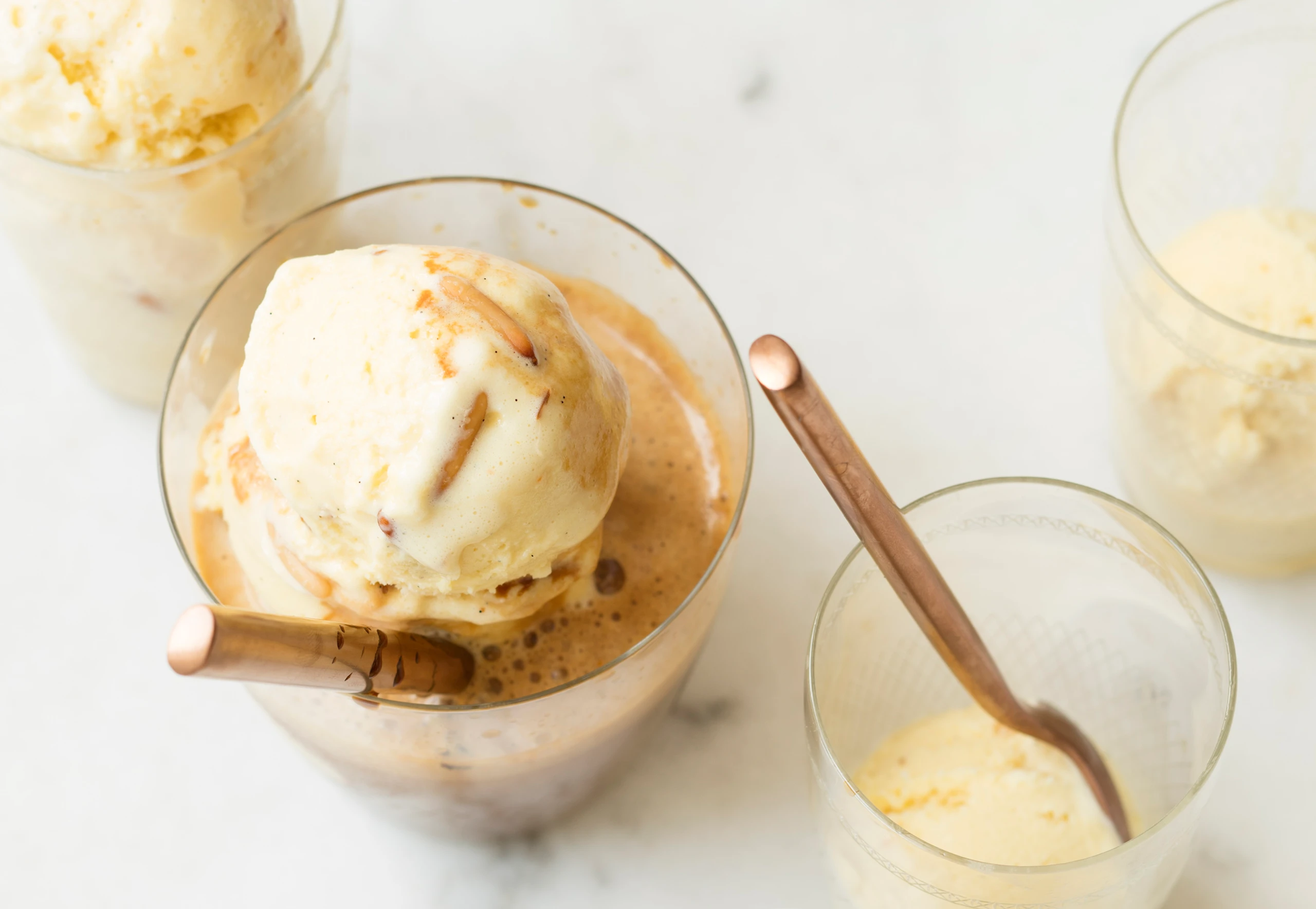Affogato mit Safran-Honig-Pignoli-Eis