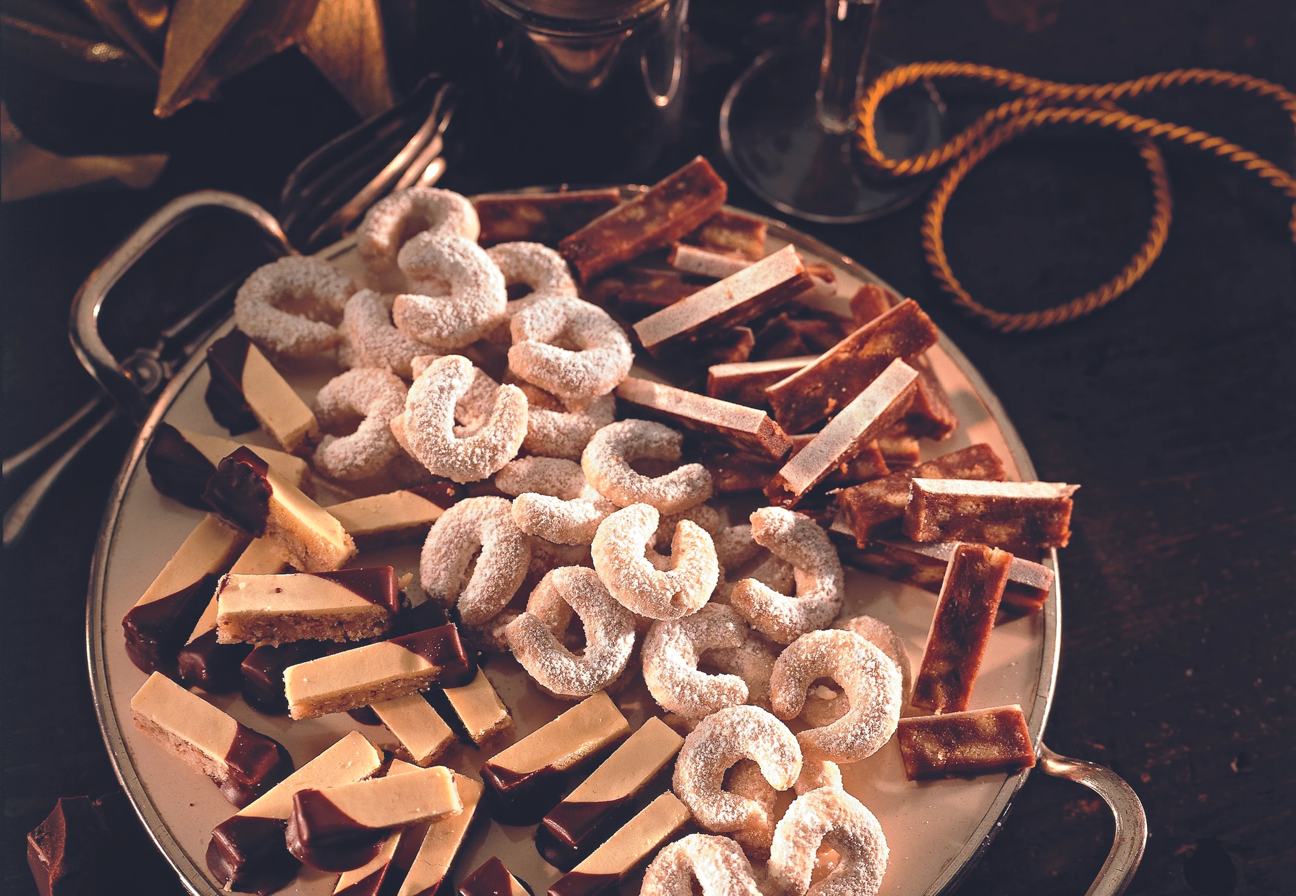 Kuvertüre grob zerkleinern, schmelzen (über Wasserdampf oder in der Mikrowelle) und die Kekse an einem Ende tunken. Kekse auf Backpapier legen und ca. 2 Stunden trocknen lassen. Kekse mit der getunkten Seite zuerst vom Papier lösen, damit sie nicht brechen.