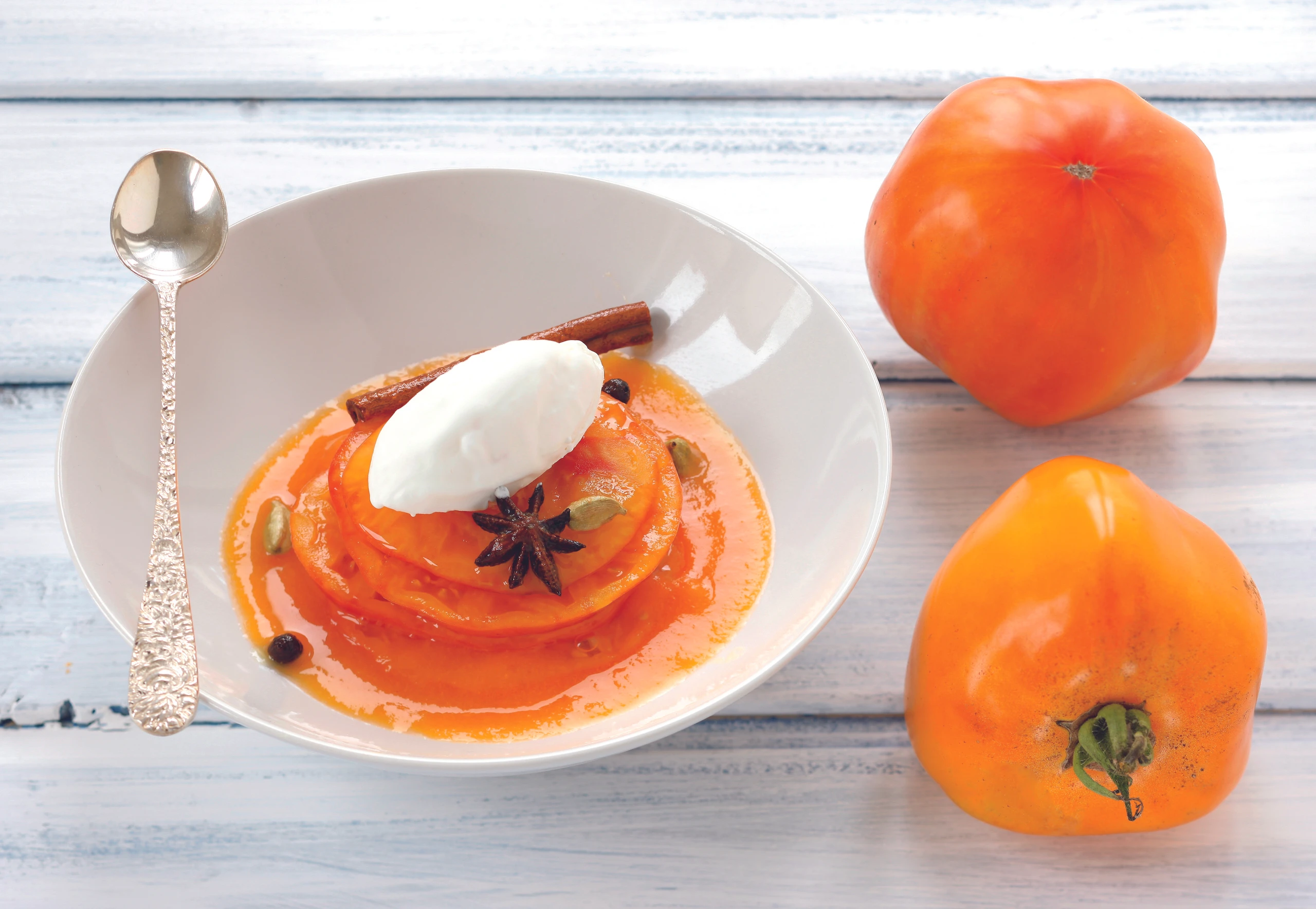 Ananas-Paradeiser im Gewürzsirup mit Valencia-Mus