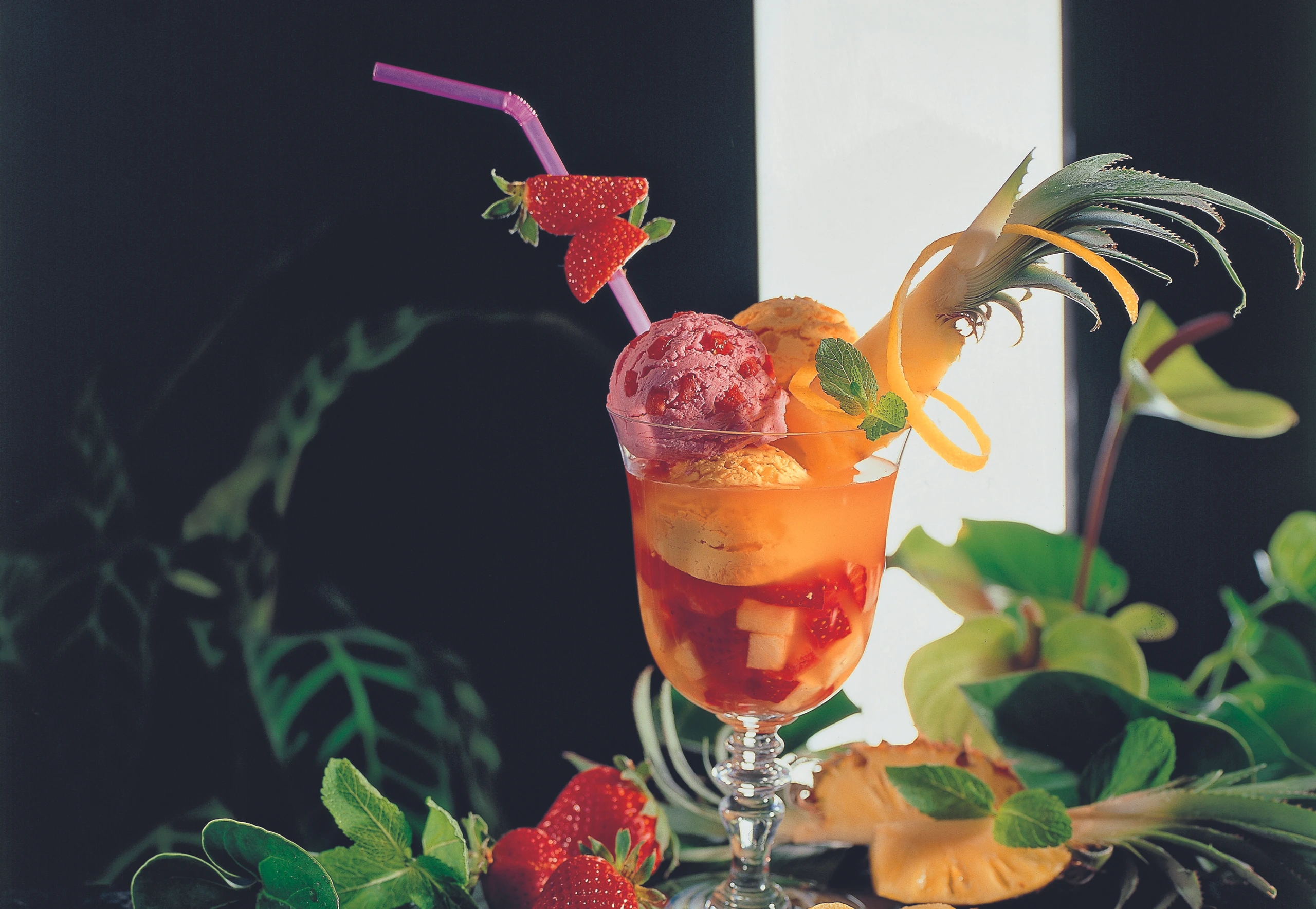 Eis portionieren, in die Gläser geben, den Ananassaft zugießen und die Cocktails mit Minzeblättern garnieren.