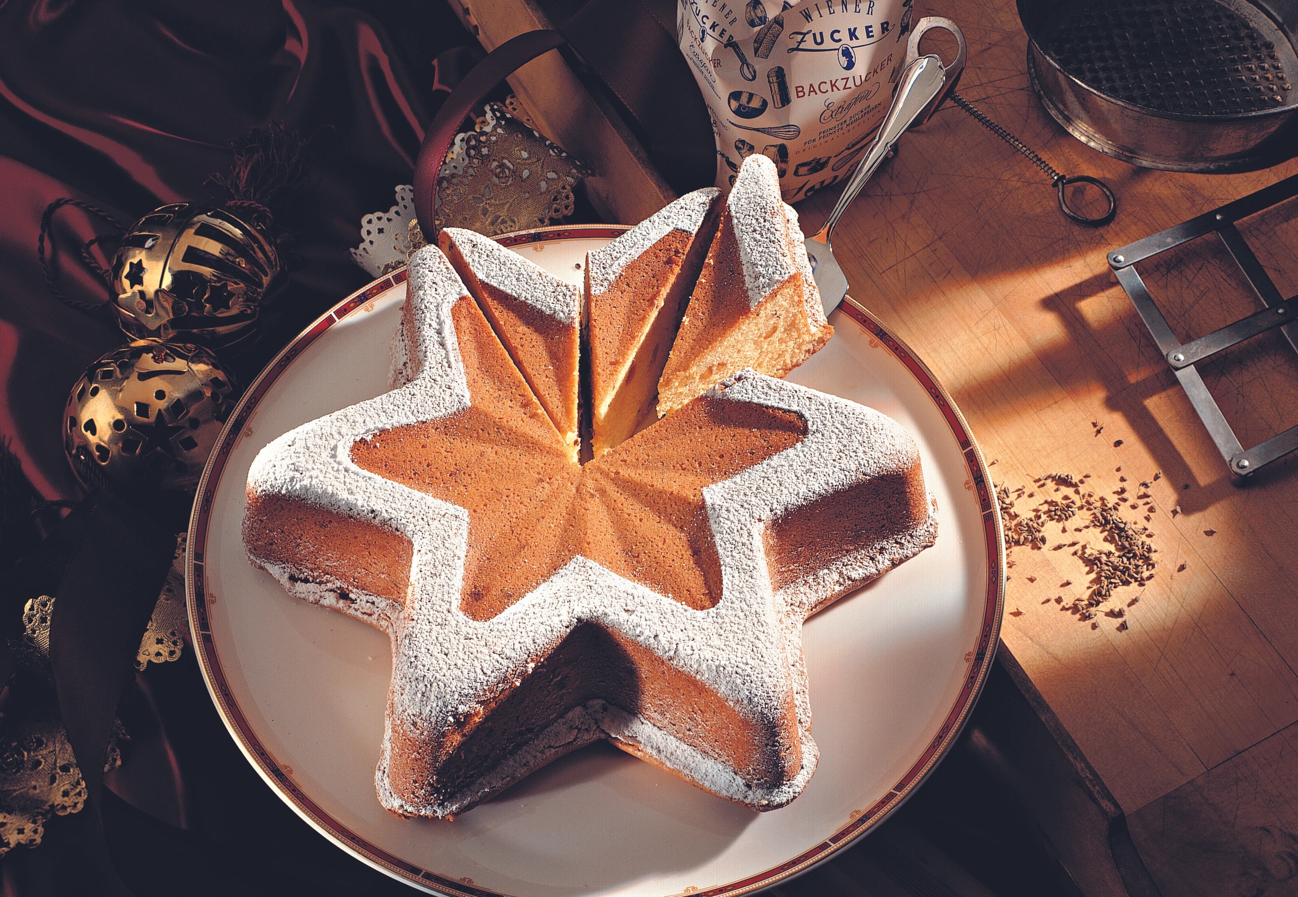Backrohr auf 170 °C vorheizen. Kuchenform (Sternform; Inhalt ca. 1 1/2 l) mit Butter ausstreichen und mit Mehl ausstreuen.