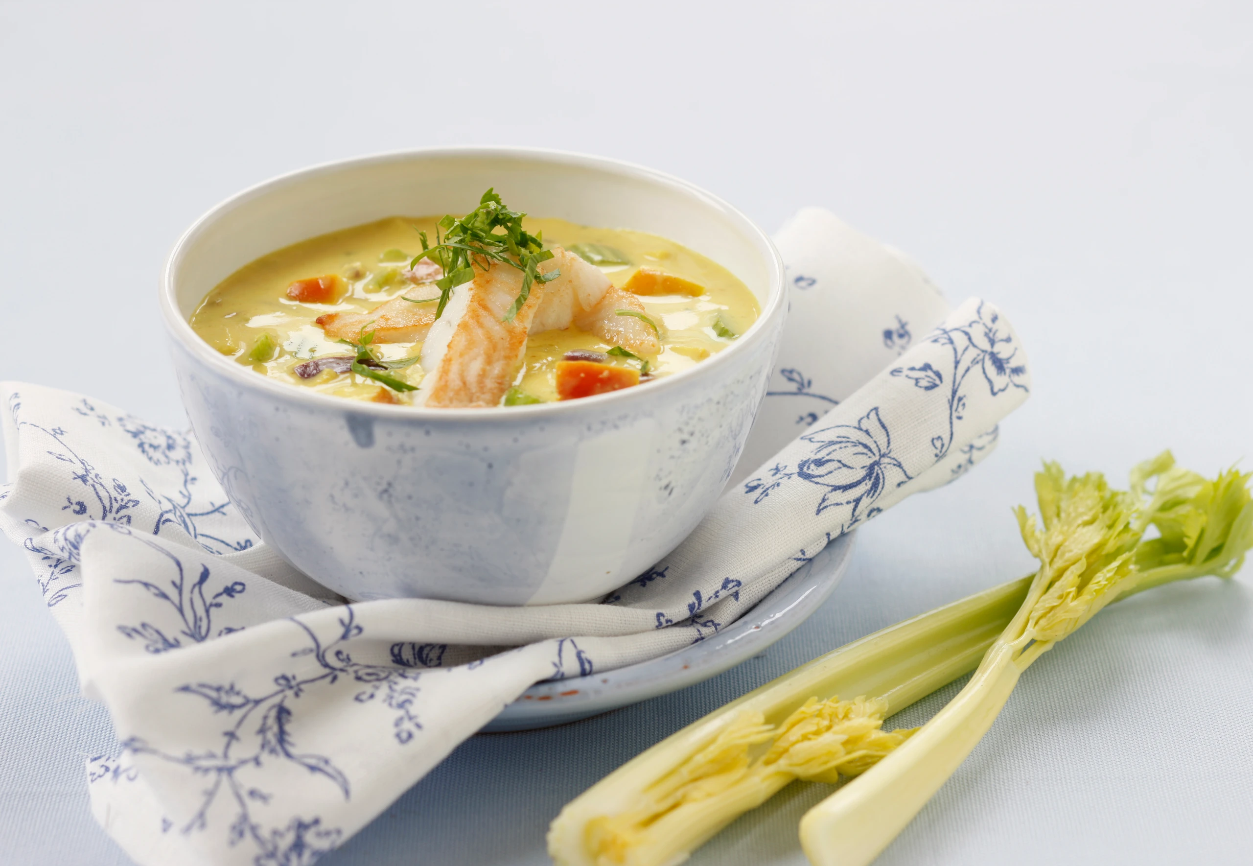 Apfel-Currysuppe mit Schollenfilets