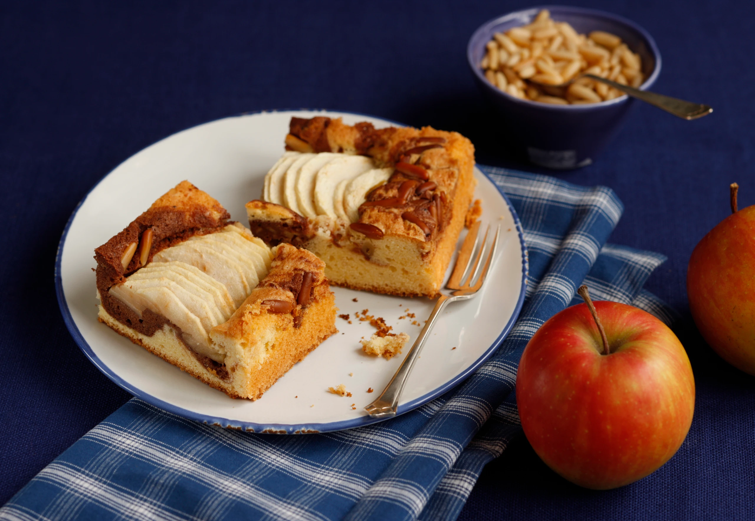 Äpfel schälen, Kerngehäuse ausstechen. Äpfel halbieren und in 0,5 cm dicke Scheiben schneiden. Kuchenmasse mit den Apfelscheiben belegen, mit Zitronensaft bestreichen und mit Pignoli bestreuen.