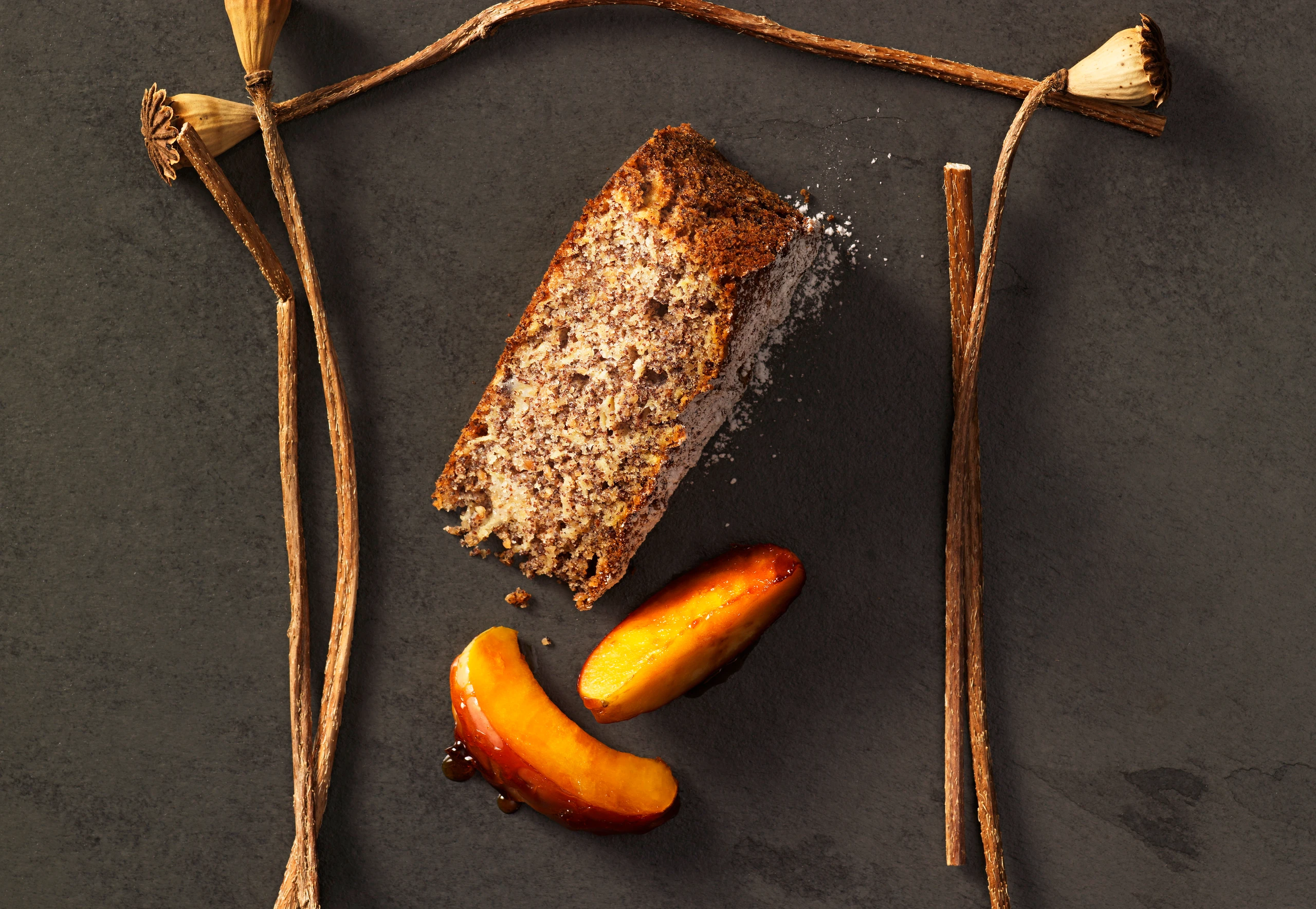 Für die Garnitur Äpfel in Spalten schneiden, Kerngehäuse entfernen. In einer Pfanne Zucker schmelzen und die Apfelspalten darin kurz anbraten. Torte mit Staubzucker bestreuen und mit den Apfelspalten servieren.