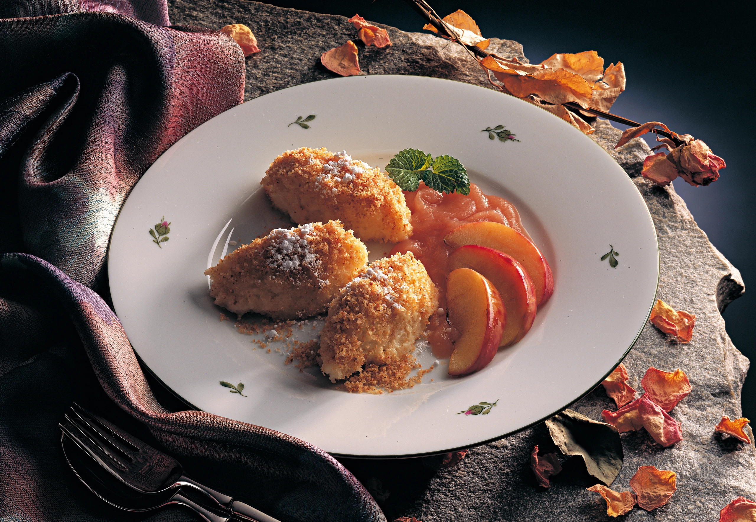 - Nockerln mit einem Siebschöpfer aus dem Wasser heben, gut abtropfen lassen und in den Butterbröseln wenden. Apfelnockerln mit Staubzucker bestreuen und mit Bratapfelsauce servieren.