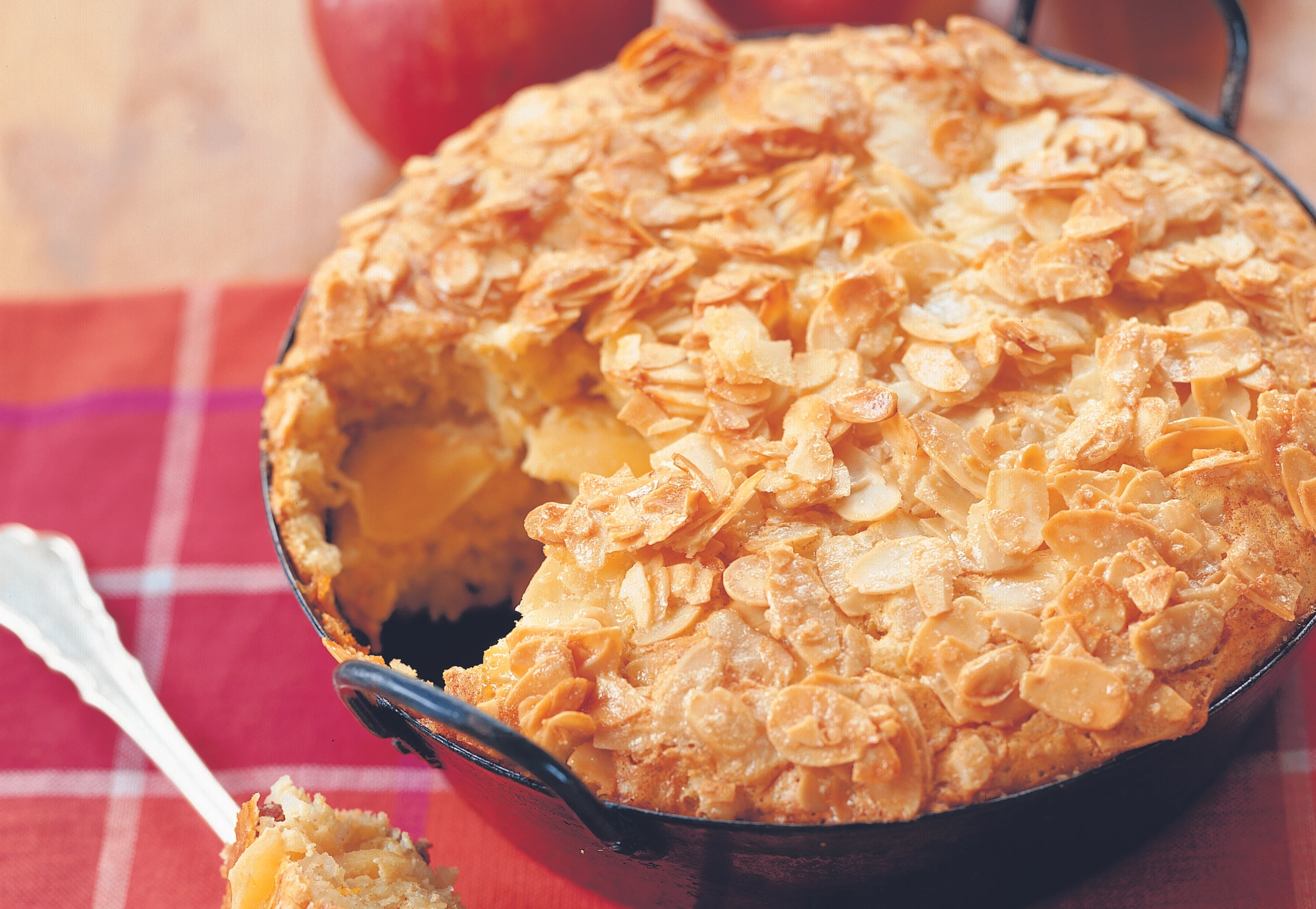 Eier trennen. Butter, Dotter und Braunzucker in die Reismasse rühren. Eiklar mit Kristallzucker zu cremigem Schnee schlagen und unterheben. Ein Viertel der Masse in der Form verteilen, und mit einem Drittel der Apfelmischung bedecken. Diesen Vorgang mit den übrigen Zutaten wiederholen. Mit Reis abschließen.