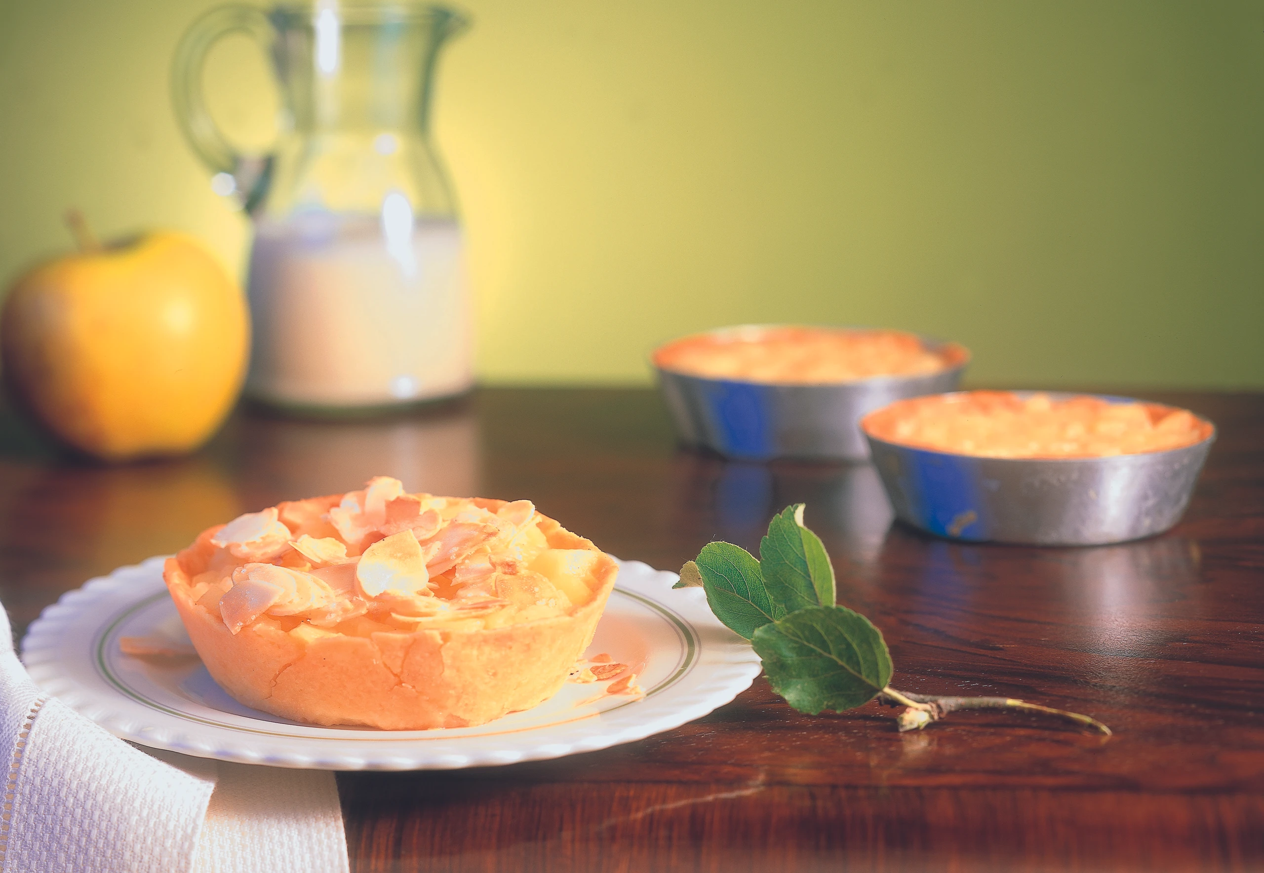Backrohr auf 180 °C vorheizen. 5 Tartelette-Förmchen mit glattem Rand (Ø 10 cm, Höhe ca. 2 cm) bereit stellen. Teig in 5 gleiche Teile teilen. Teigstücke zu Kugeln formen und zwischen Frischhaltefolie zu jeweils ca. 2 mm dicken Scheiben (Ø ca. 15 cm) ausrollen. Teigscheiben in die Förmchen legen, den Teig leicht über die Kante ziehen, damit er beim Backen nicht hinunter rutscht.