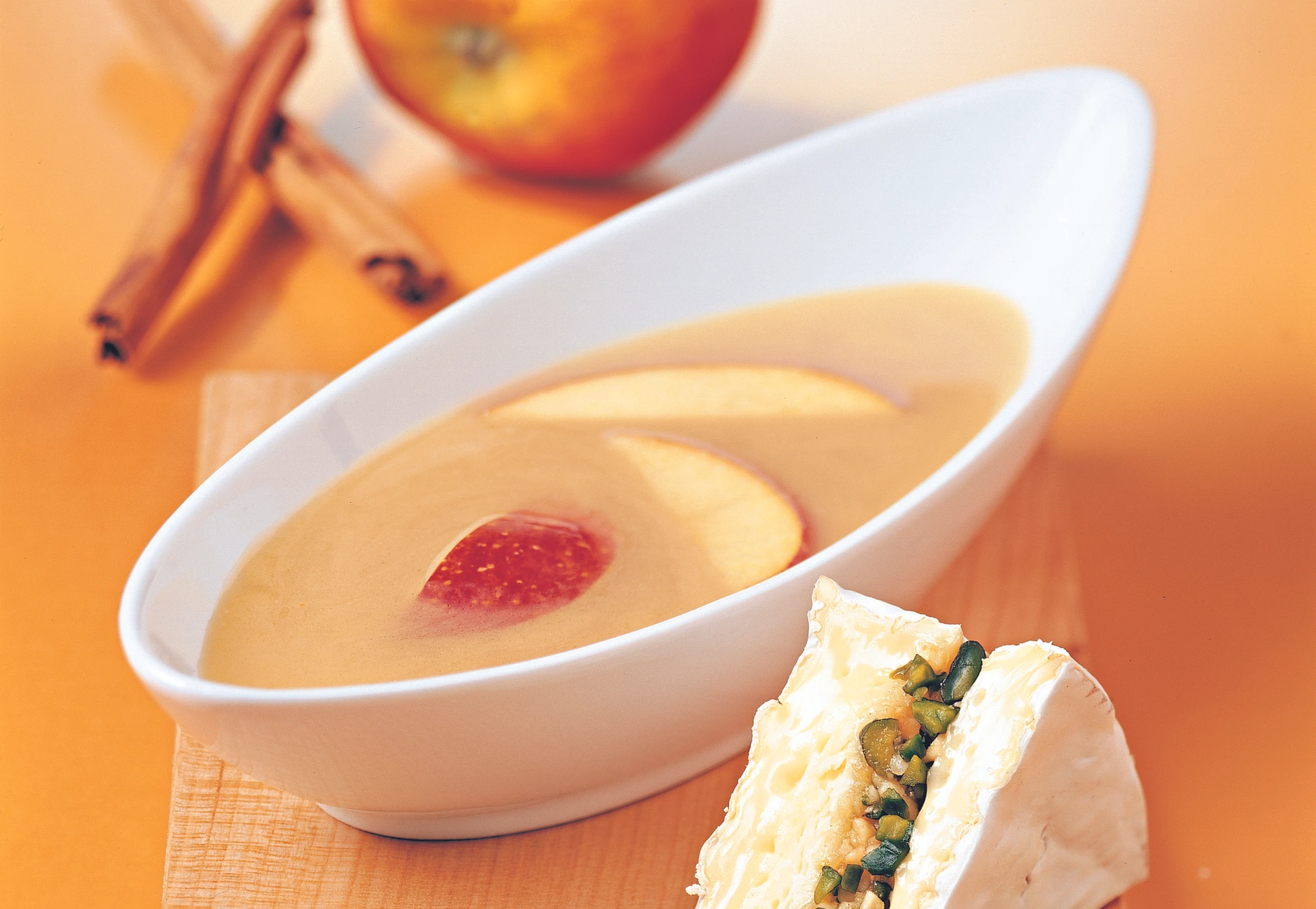 Apfel-Zimtsuppe mit Brie-Törtchen