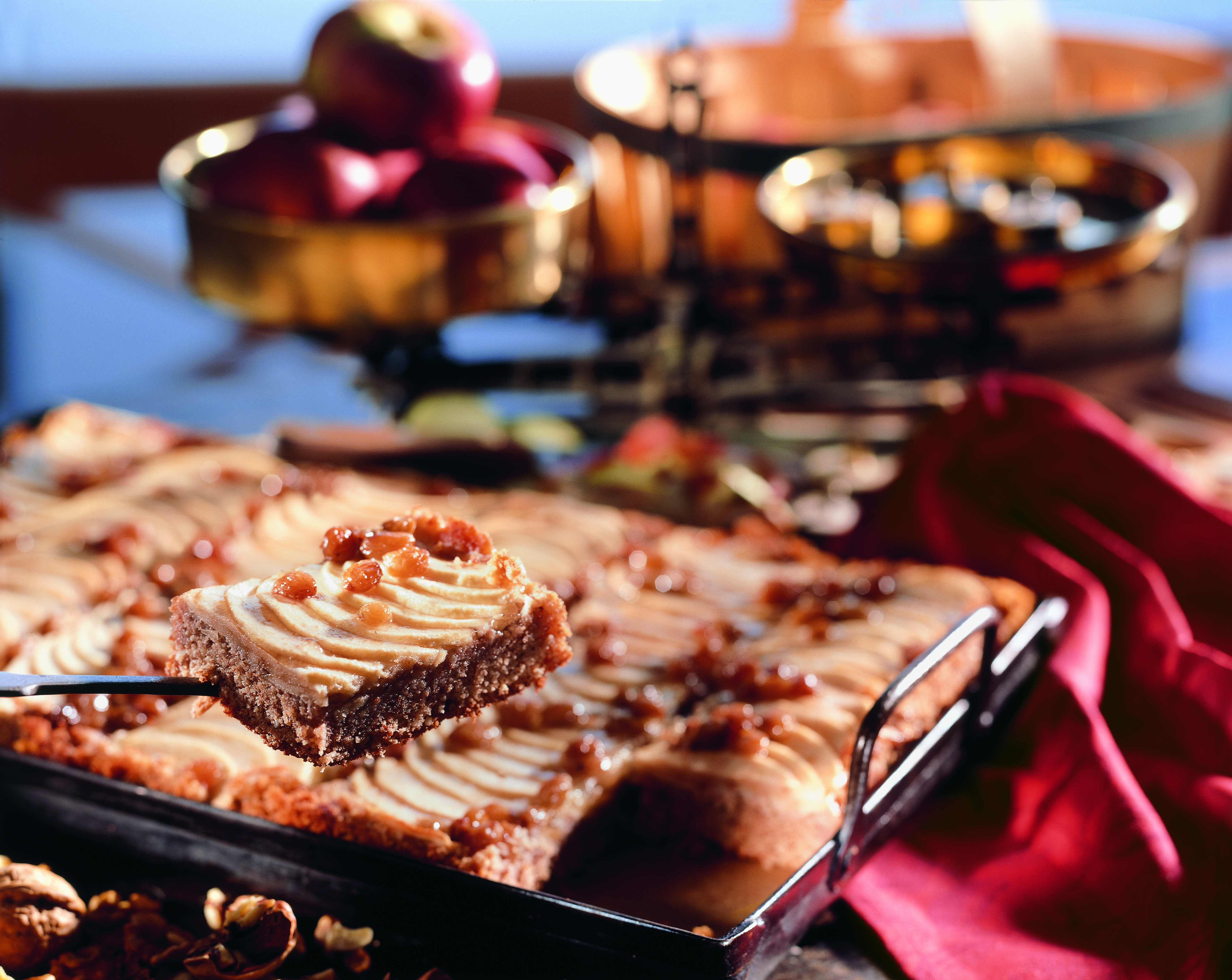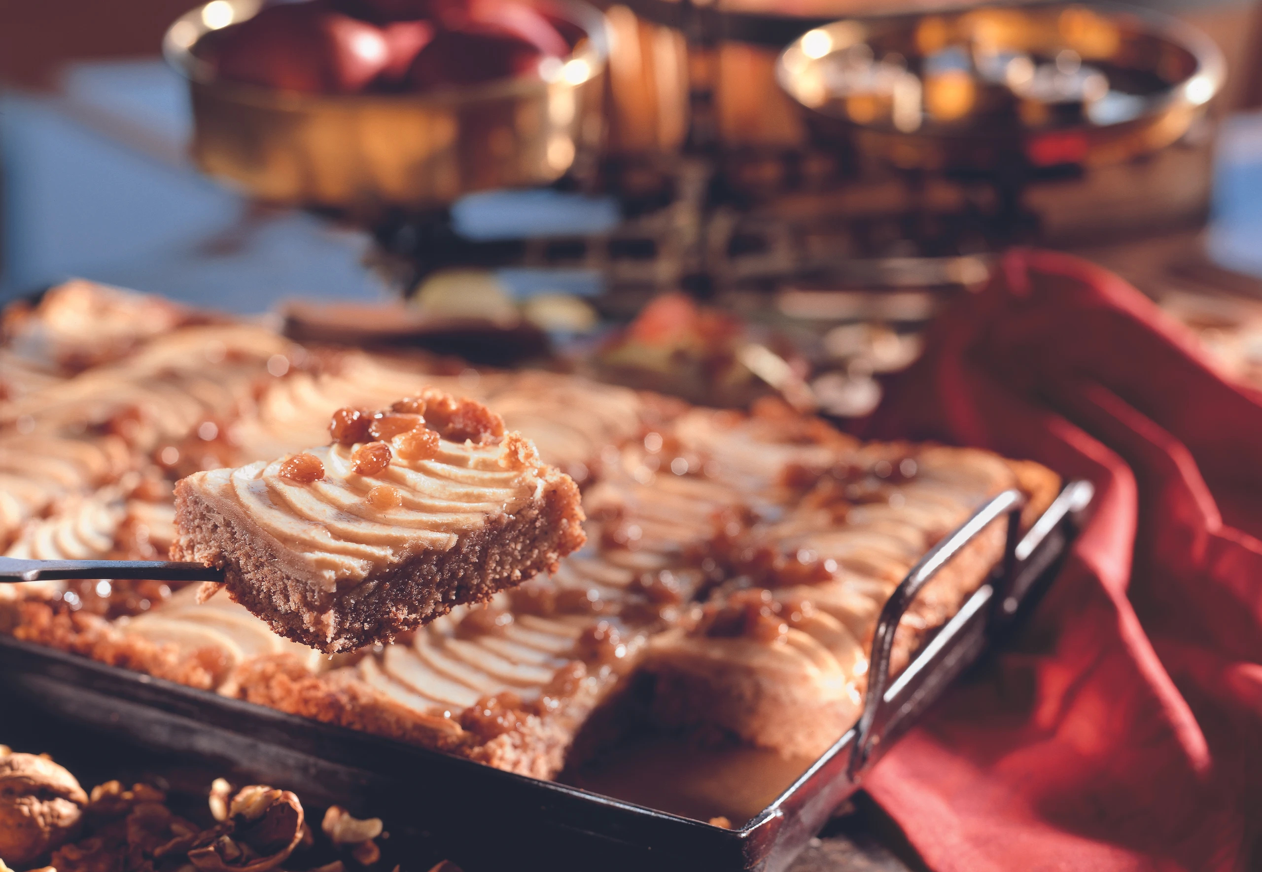Apfelkuchen vom Blech mit Nüssen und Rosinen