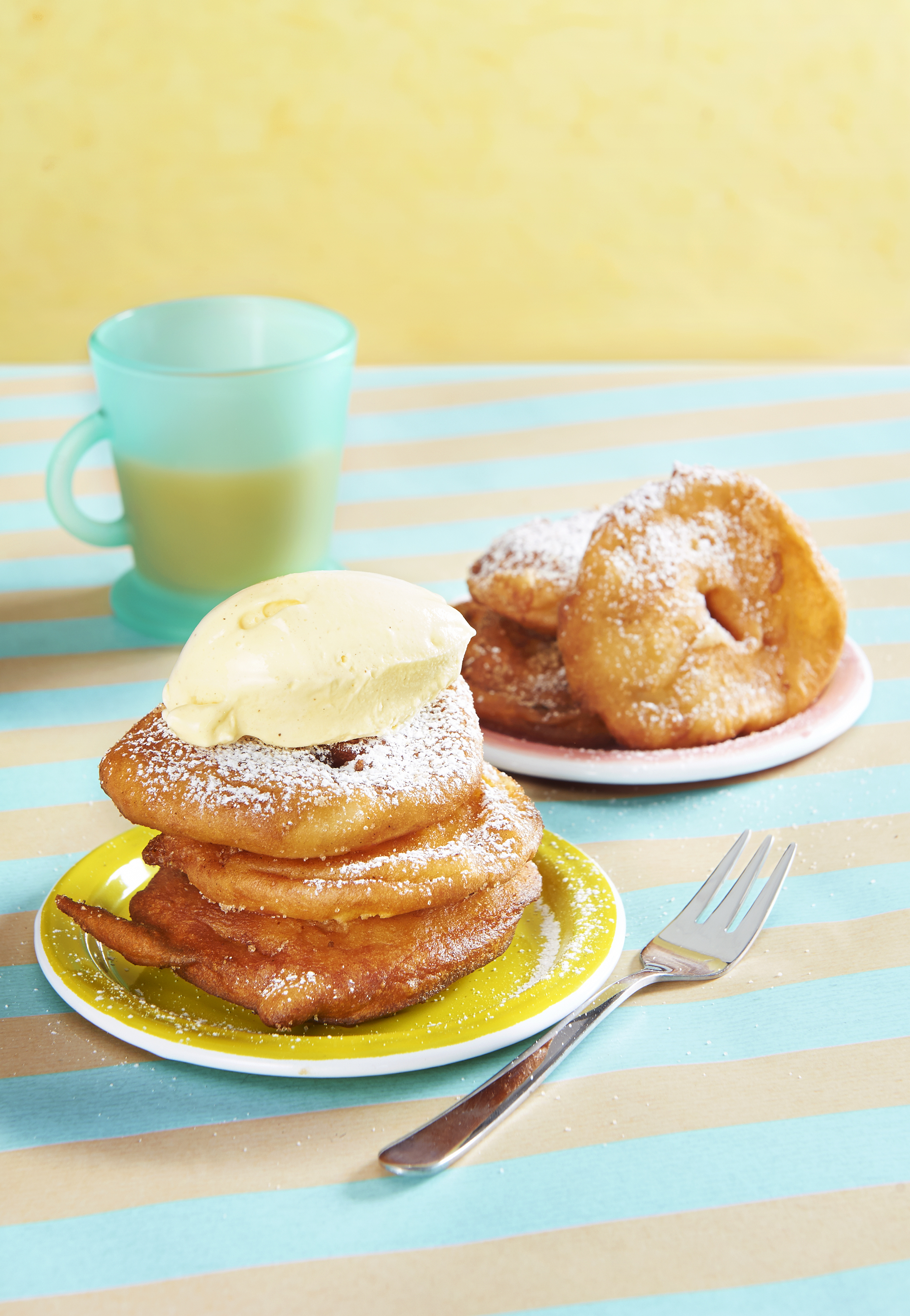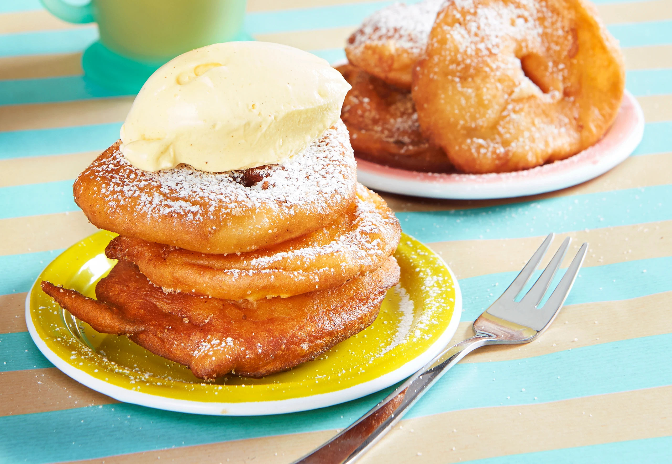 Ca. 3 Finger hoch Öl erhitzen. Äpfel in den Teig tauchen und im Öl schwimmend backen. Herausheben, abtropfen lassen, mit Zucker und Zimt bestreuen und mit Vanilleeis servieren.