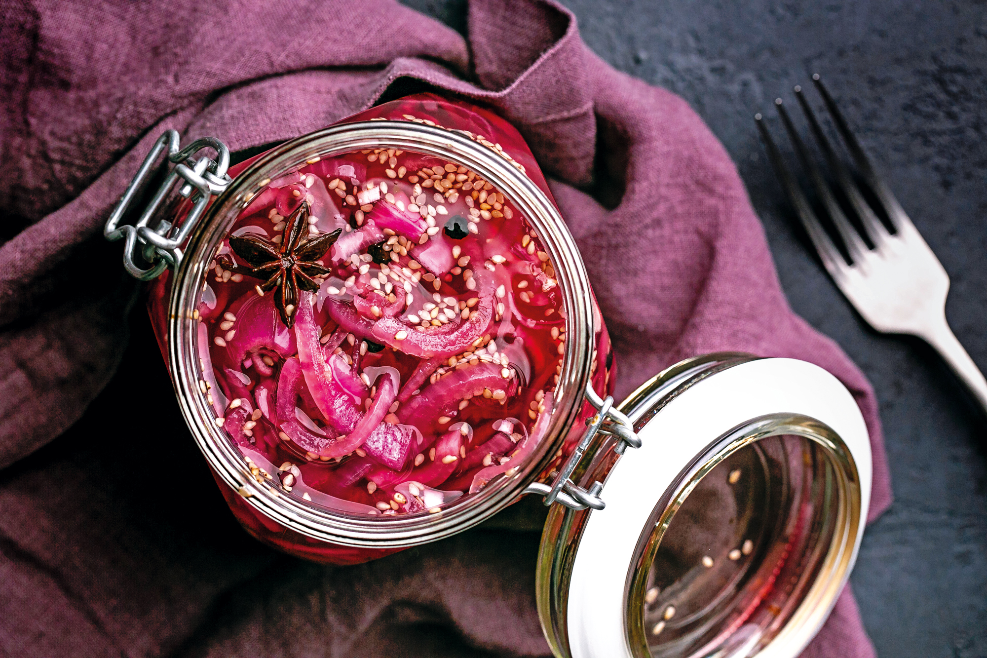 Asiatisch eingelegte, rote Zwiebeln