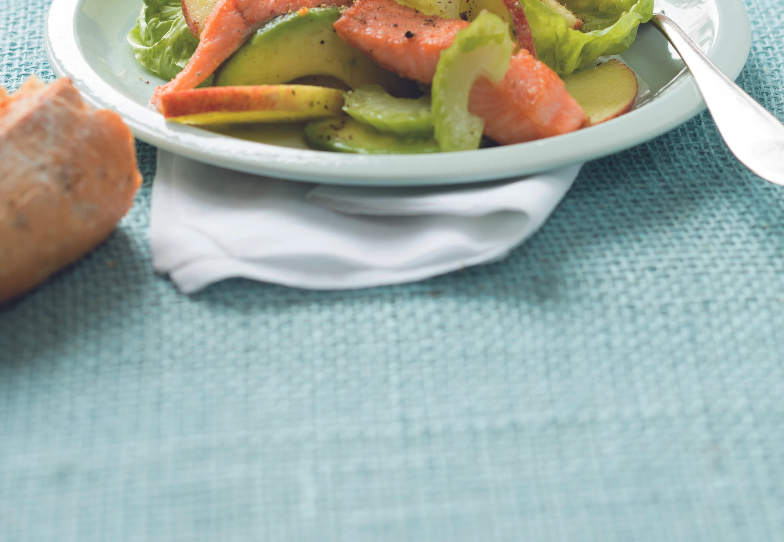 Avocado-Apfelsalat mit Lachsforelle