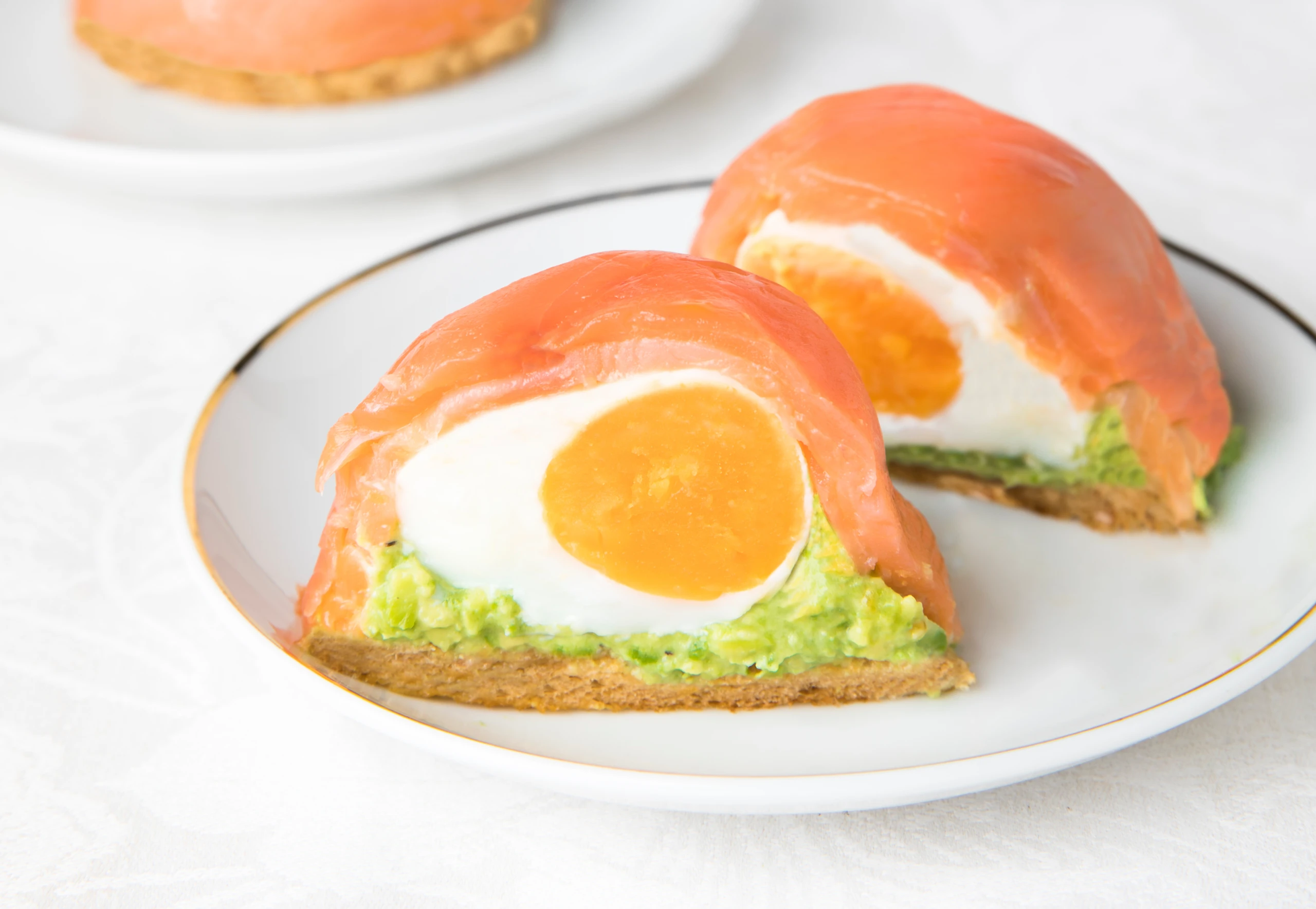 Avocado-Lachs-Törtchen mit pochiertem Ei