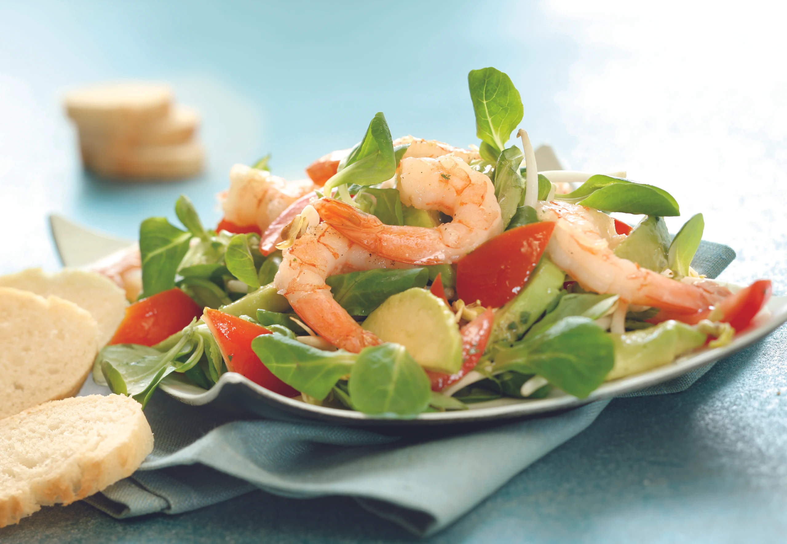 Avocado-Vogerlsalat mit Shrimps