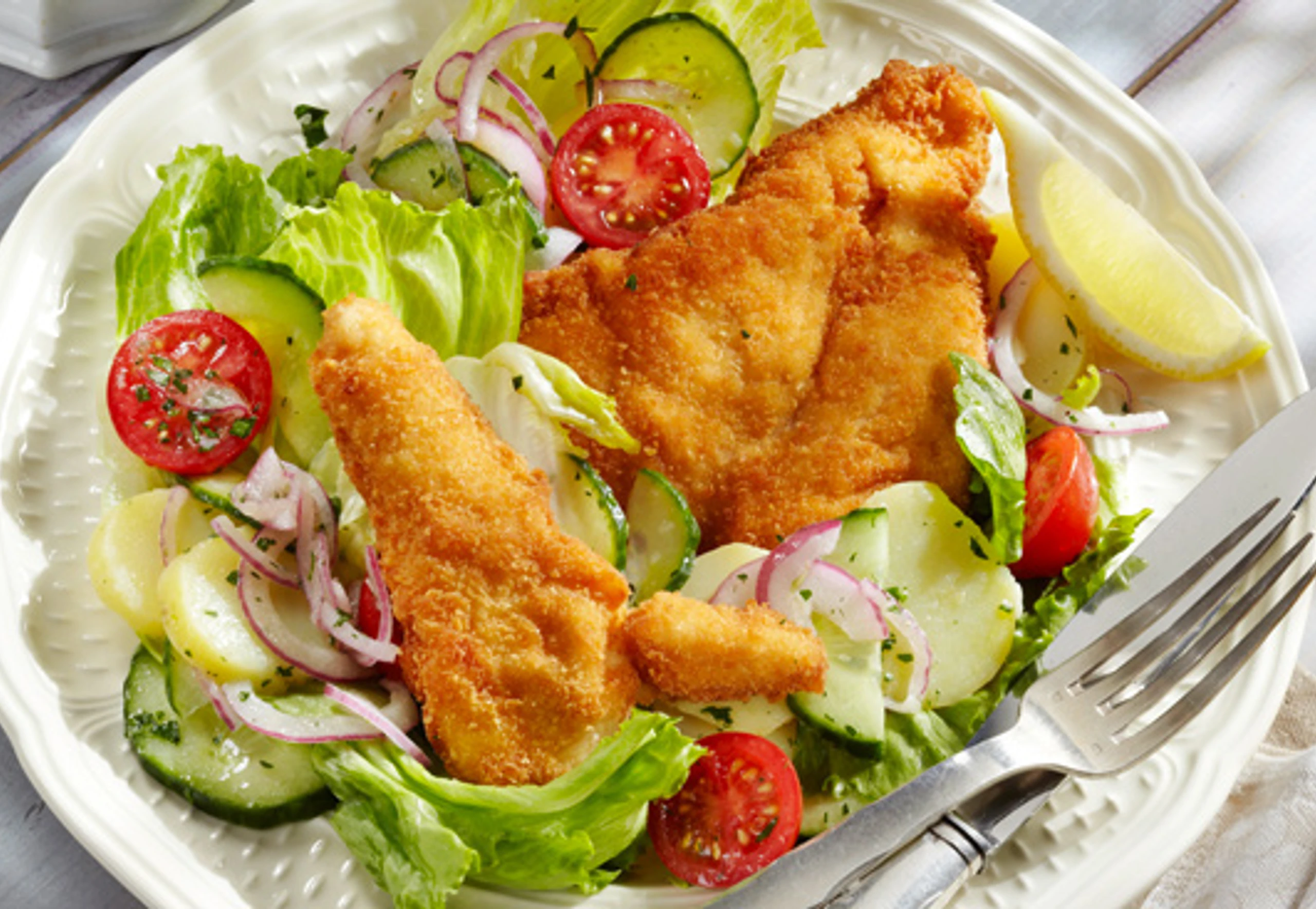 - Rohr auf 80°C vorheizen. Hühnerstücke salzen, pfeffern, in Mehl, Eiern und Bröseln panieren. 3 Finger hoch Öl erhitzen. Hühnerstücke darin backen, herausheben, auf Küchenpapier abtropfen lassen und im Rohr warm stellen.