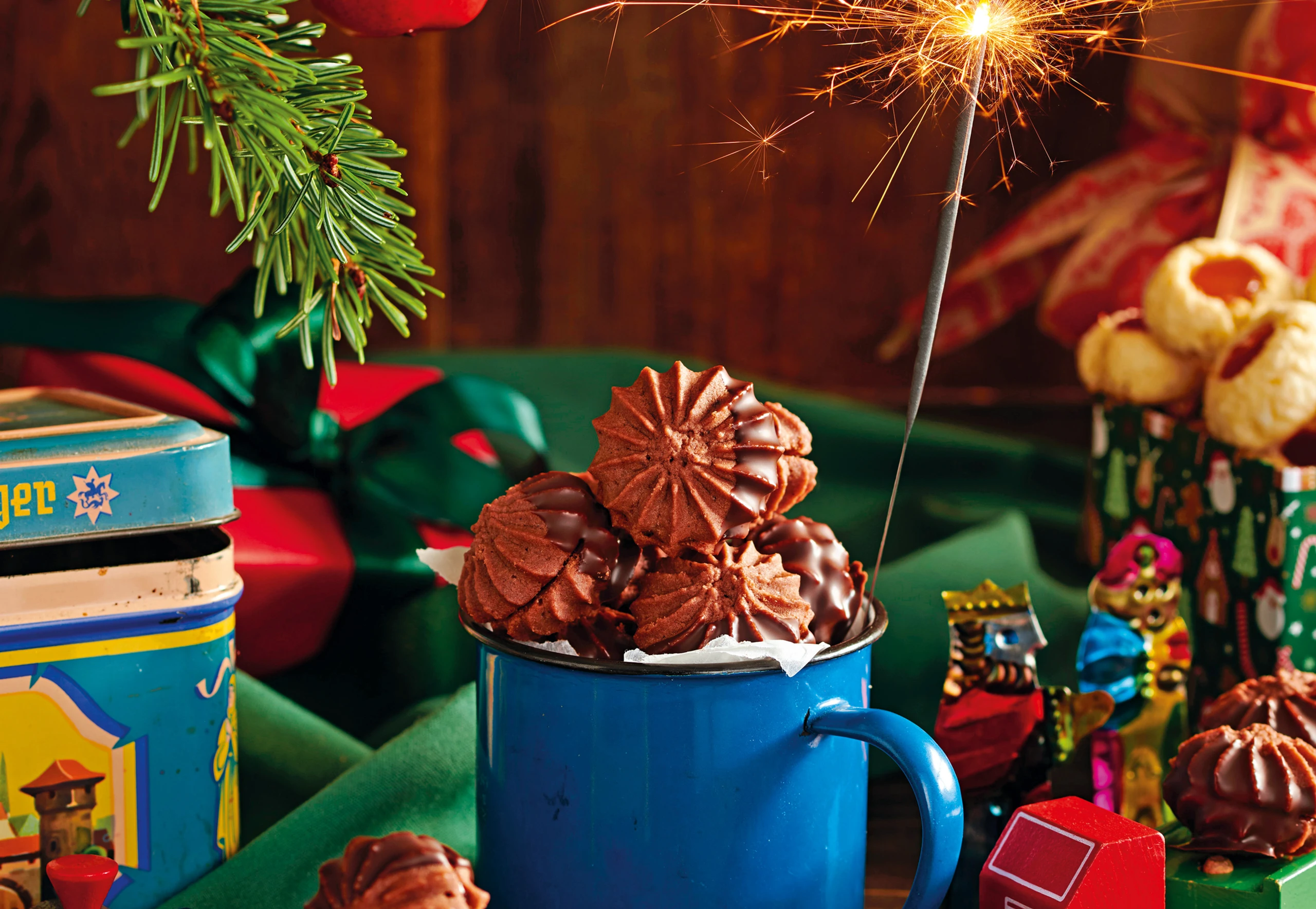 Teig in einen Dressiersack mit gezackter Tülle füllen und Tupfen auf die Bleche dressieren. Kekse nacheinander im Rohr (mittlere Schiene) ca. 12 Minuten backen.