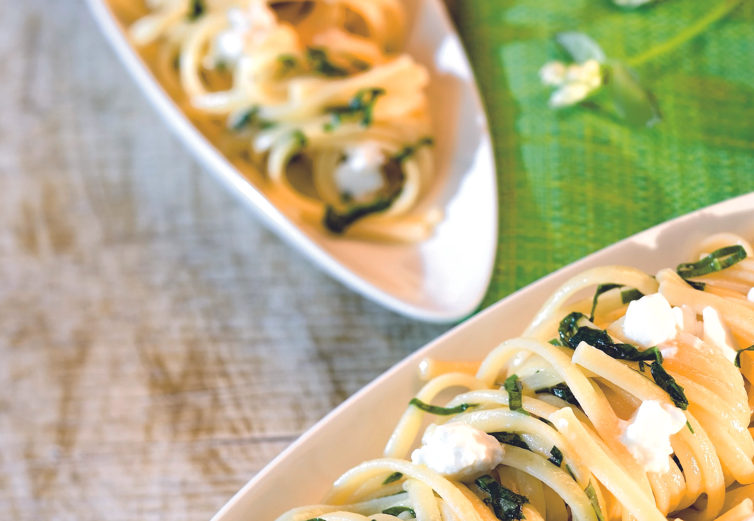 Schafkäse in Stücke schneiden. Bärlauch putzen, waschen und in Streifen schneiden. Nudeln in reichlich Salzwasser bissfest kochen, abseihen und kurz abtropfen lassen.