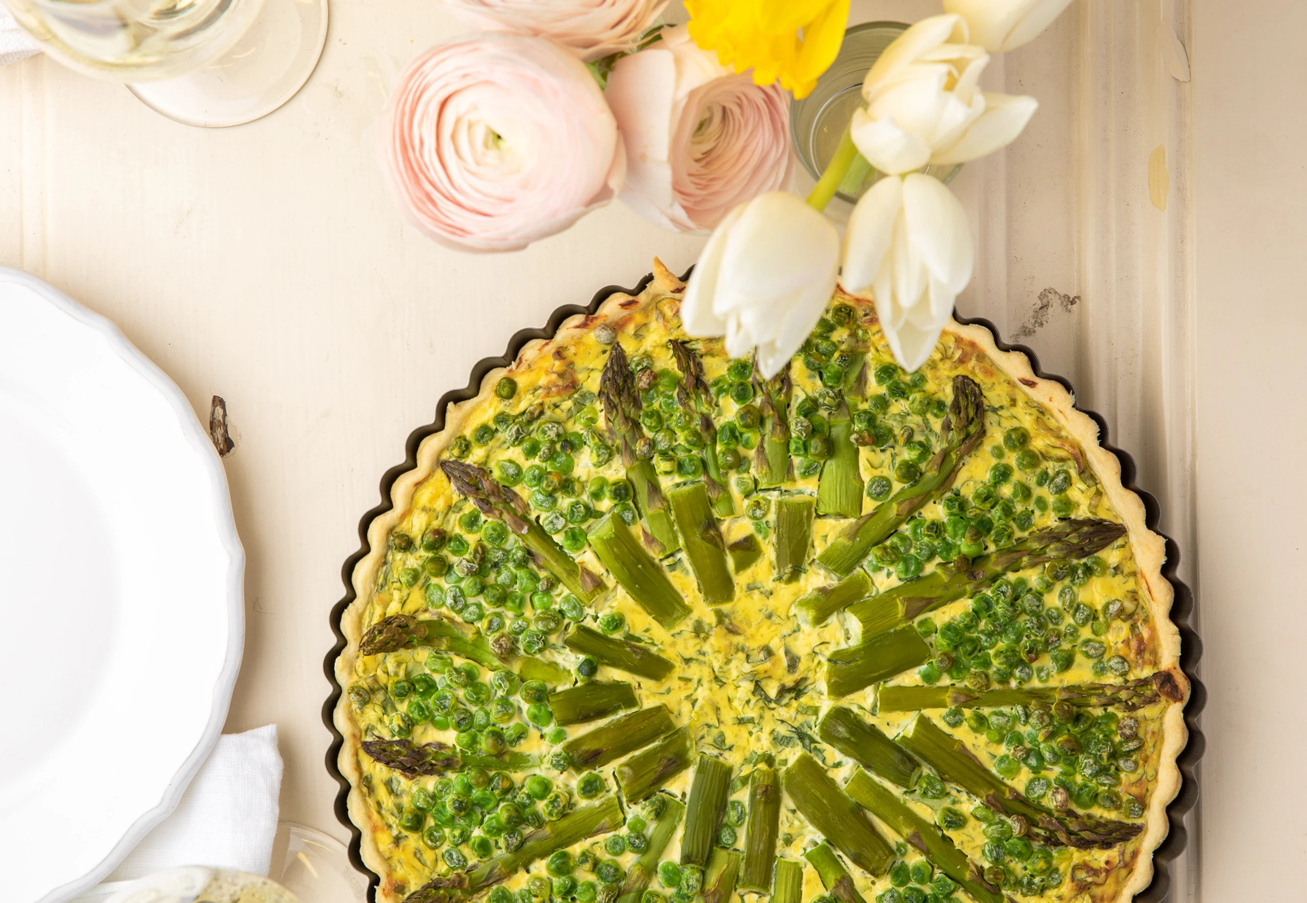 Bärlauch-Quiche mit grünem Spargel und Erbsen