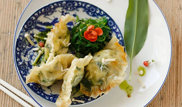 Tascherl mit wenig vom Bärlauchöl anrichten und eventuell mit Blüten garniert servieren. Als Beilage passt Algensalat oder feingehobelter Rettich.