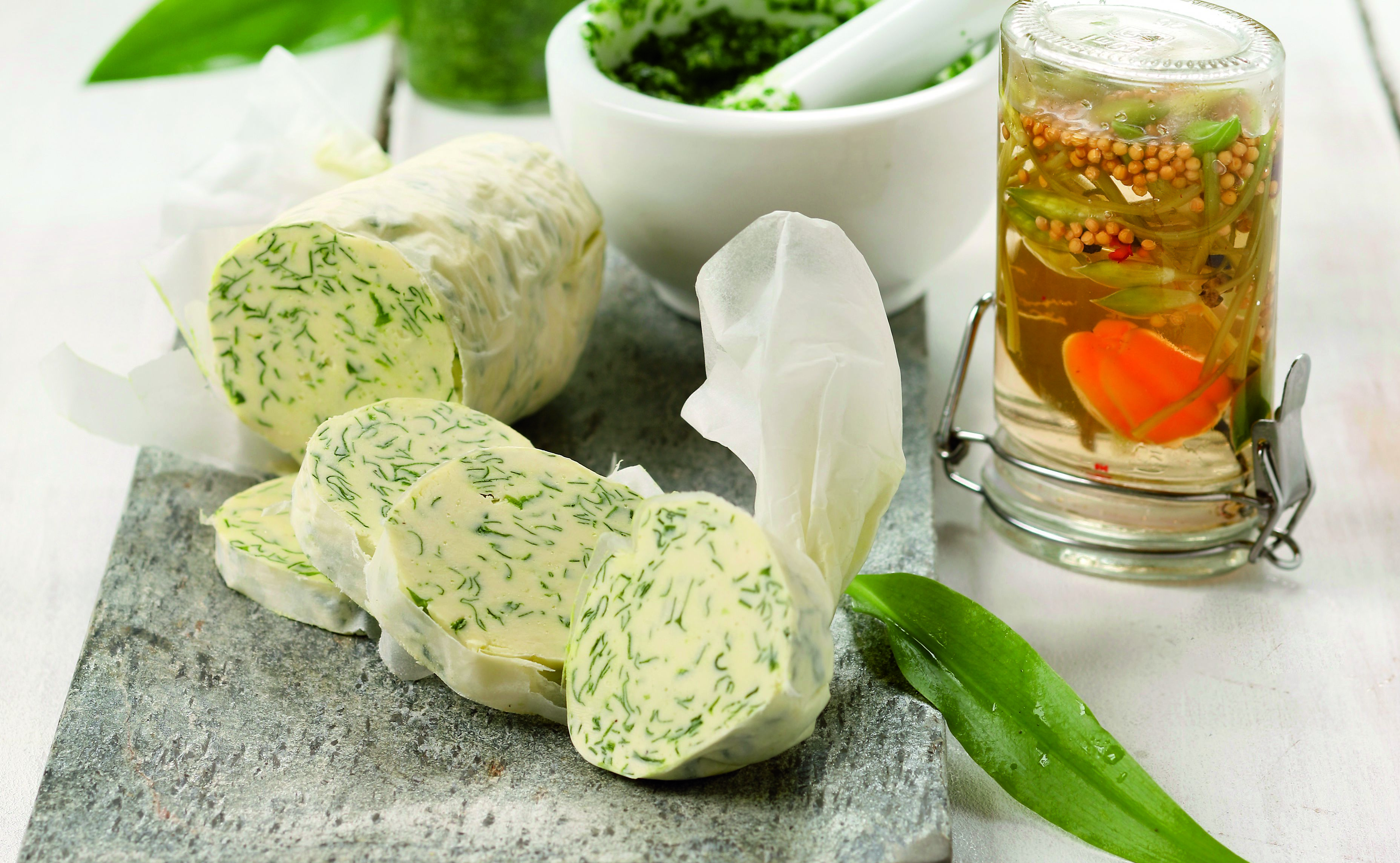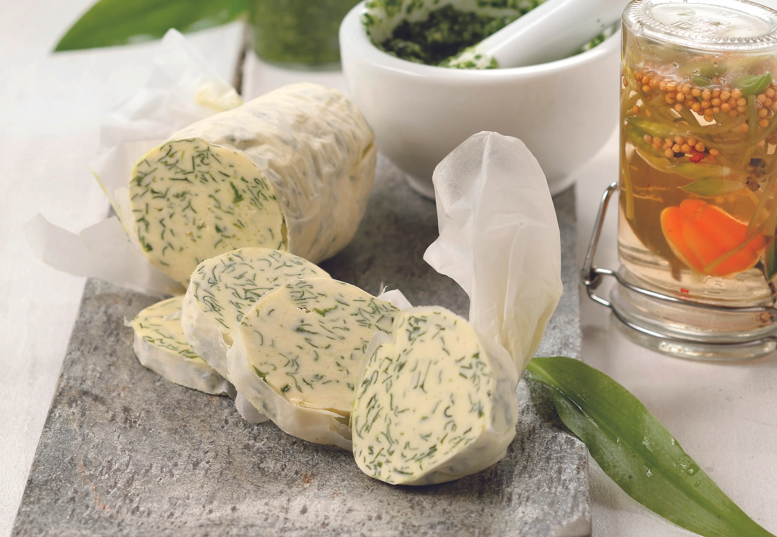 Bärlauchbutter in einen Spritzsack ohne Tülle füllen, auf ein Stück Butter- oder Backpapier ca. 3 cm dicke Rollen aufdressieren, einrollen und bis zur Verwendung im Tiefkühlfach aufbewahren; sie ist mehrere Wochen haltbar.