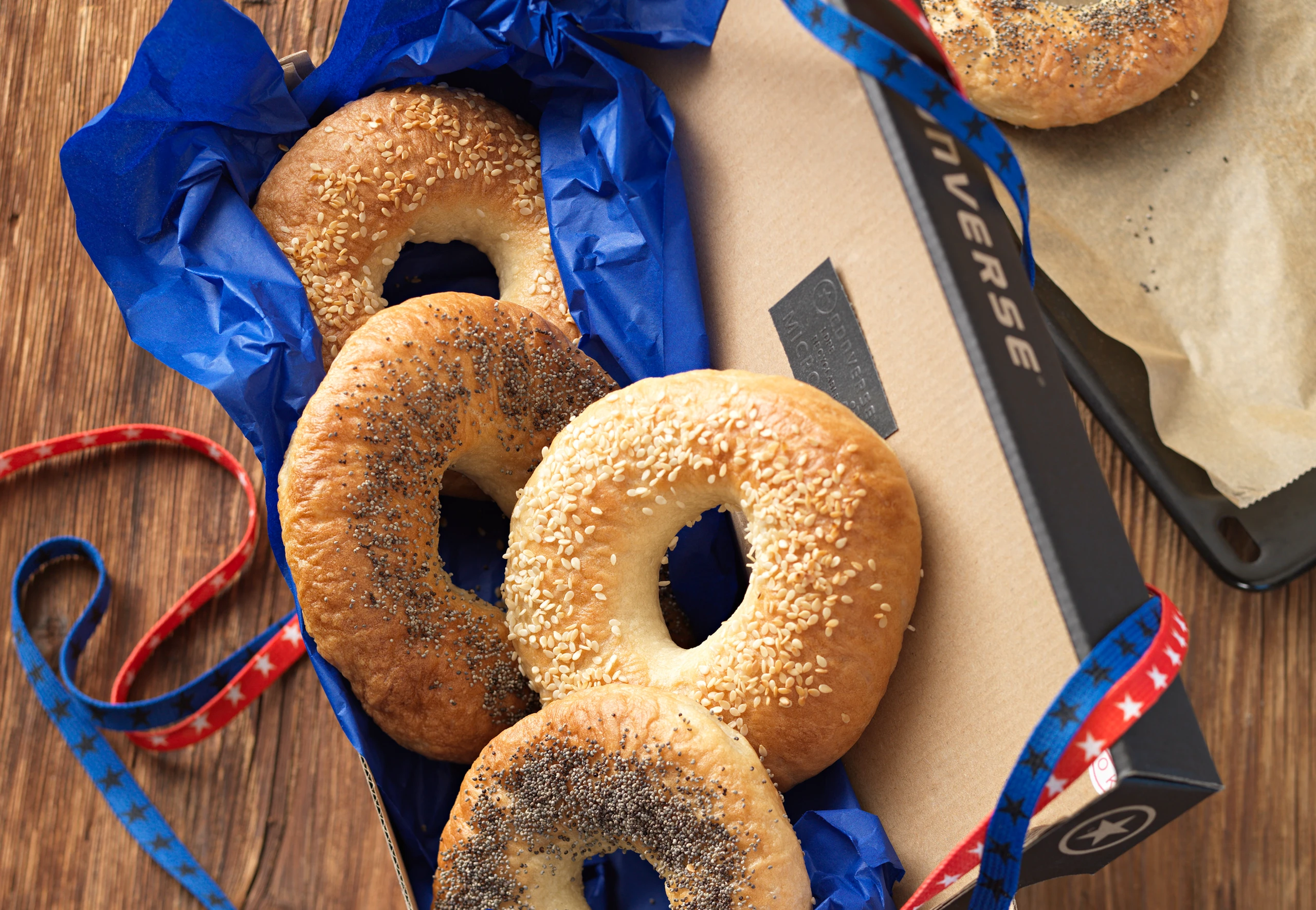 Rohr auf 220°C vorheizen. Einen breiten Topf zur Hälfte mit Wasser füllen. Wasser aufkochen, jeweils 2 Bagels mit der Oberseite nach unten ca. 30 Sekunden darin ziehen lassen, umdrehen und nochmals 30 Sekunden ziehen lassen. Bagels mit einem Siebschöpfer herausheben, kurz auf einem Küchentuch abtropfen lassen und auf ein mit Backpapier belegtes Blech legen. Bagels mit Sesam oder Mohn bestreuen und im Rohr (mittlere Schiene) in 2 Arbeitsgängen hellbraun backen (ca. 20 Minuten).