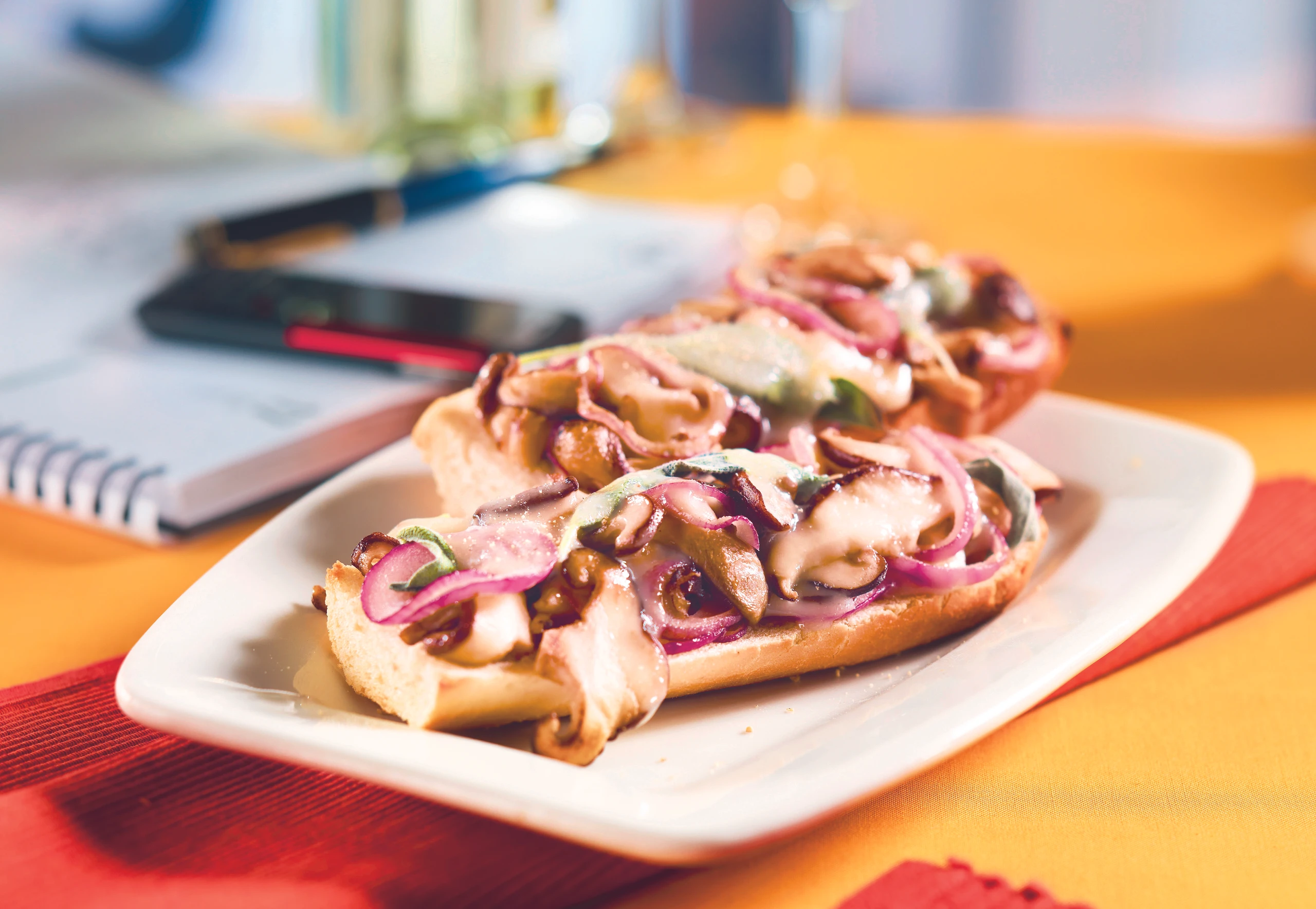 Rohr auf 180°C vorheizen. Baguette quer durchschneiden und horizontal halbieren. Pilzmischung darauf verteilen, je 2 Blätter Salbei daraufgeben und mit Taleggio belegen. Im Rohr (mittlere Schiene / Gitterrost) ca. 6 Minuten überbacken.