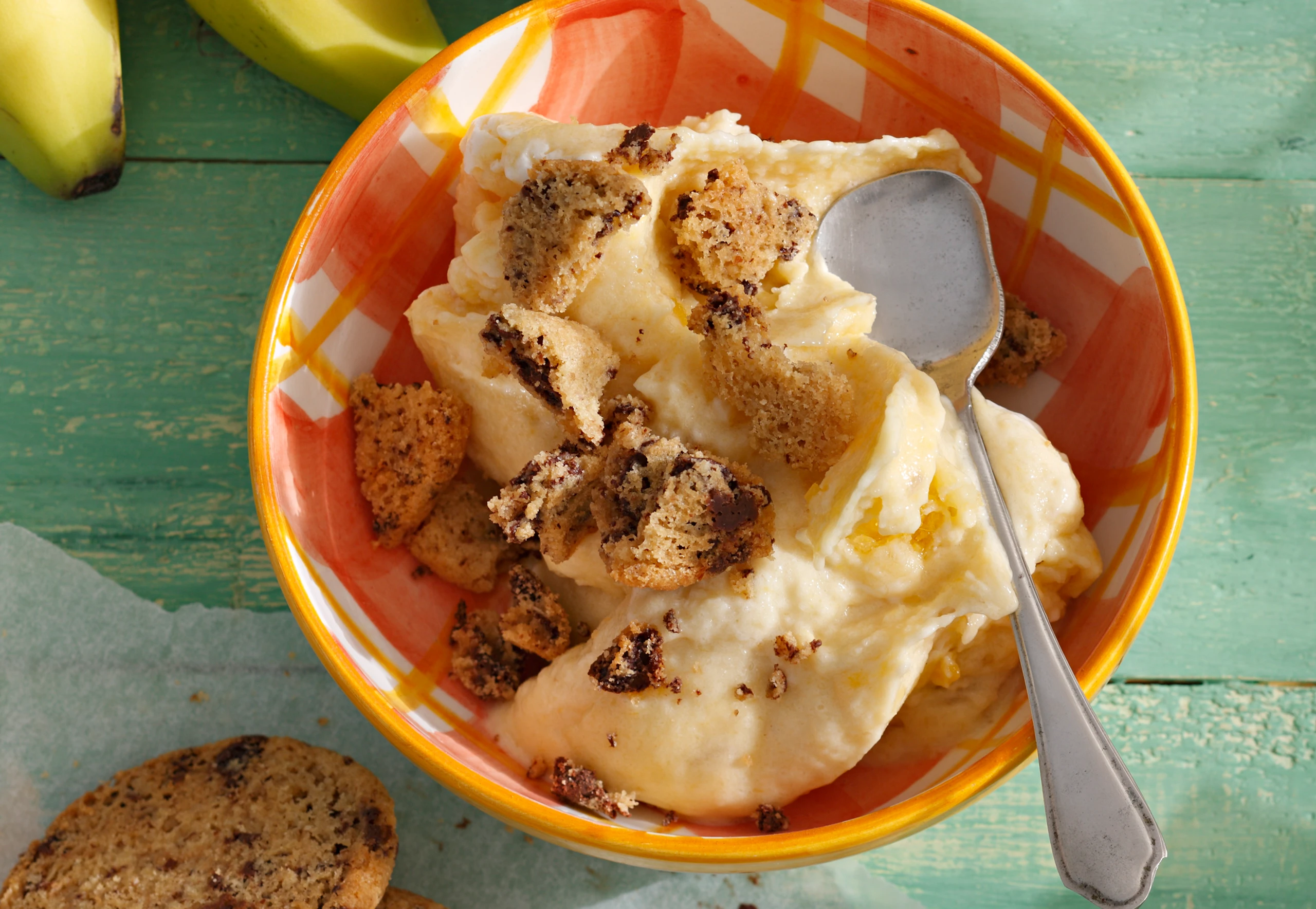 Für das Eis Bananen und Mango schälen. Mangofruchtfleisch vom Kern schneiden. Bananen und Mango klein schneiden, mit Staubzucker und Zitronensaft verrühren. Früchte in eine Schüssel füllen und für ca. 8 Stunden tiefkühlen.