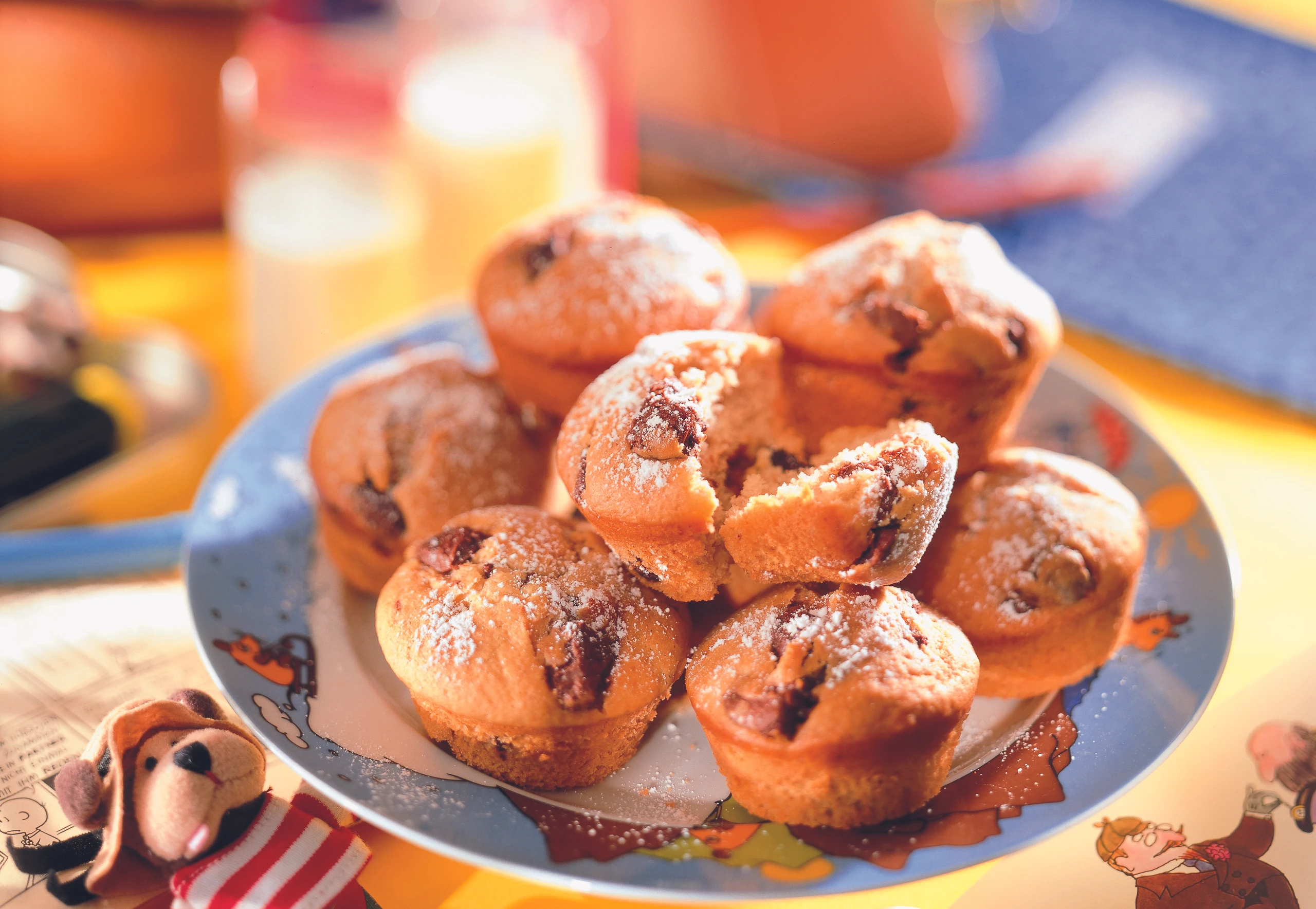 Backrohr auf 180 °C vorheizen. Muffinblech mit Antihaftbeschichtung (12 Vertiefungen; Inhalt 100 ml) vorbereiten. Nougat in kleine Stücke schneiden.