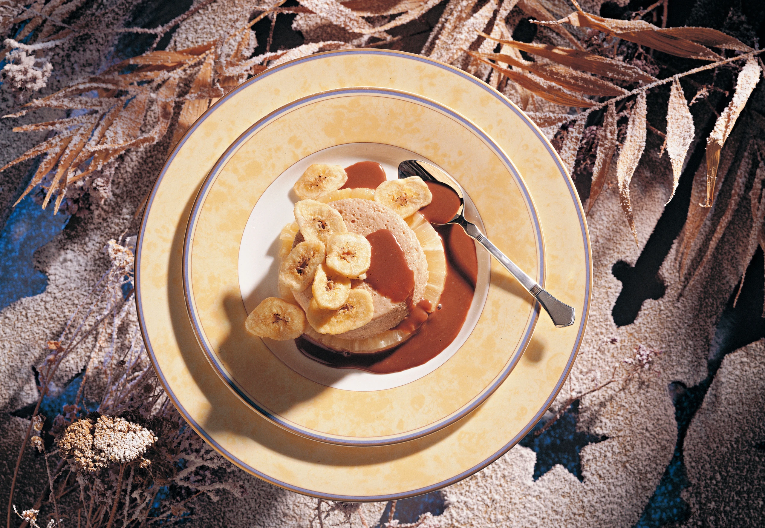 Vor dem Servieren die Ananasscheiben gut abtropfen lassen und auf Teller setzen. Die Förmchen kurz in heißes Wasser tauchen, die Bananen-Törtchen in die Mitte der Ananasscheiben stürzen und mit den Bananenscheiben garnieren.