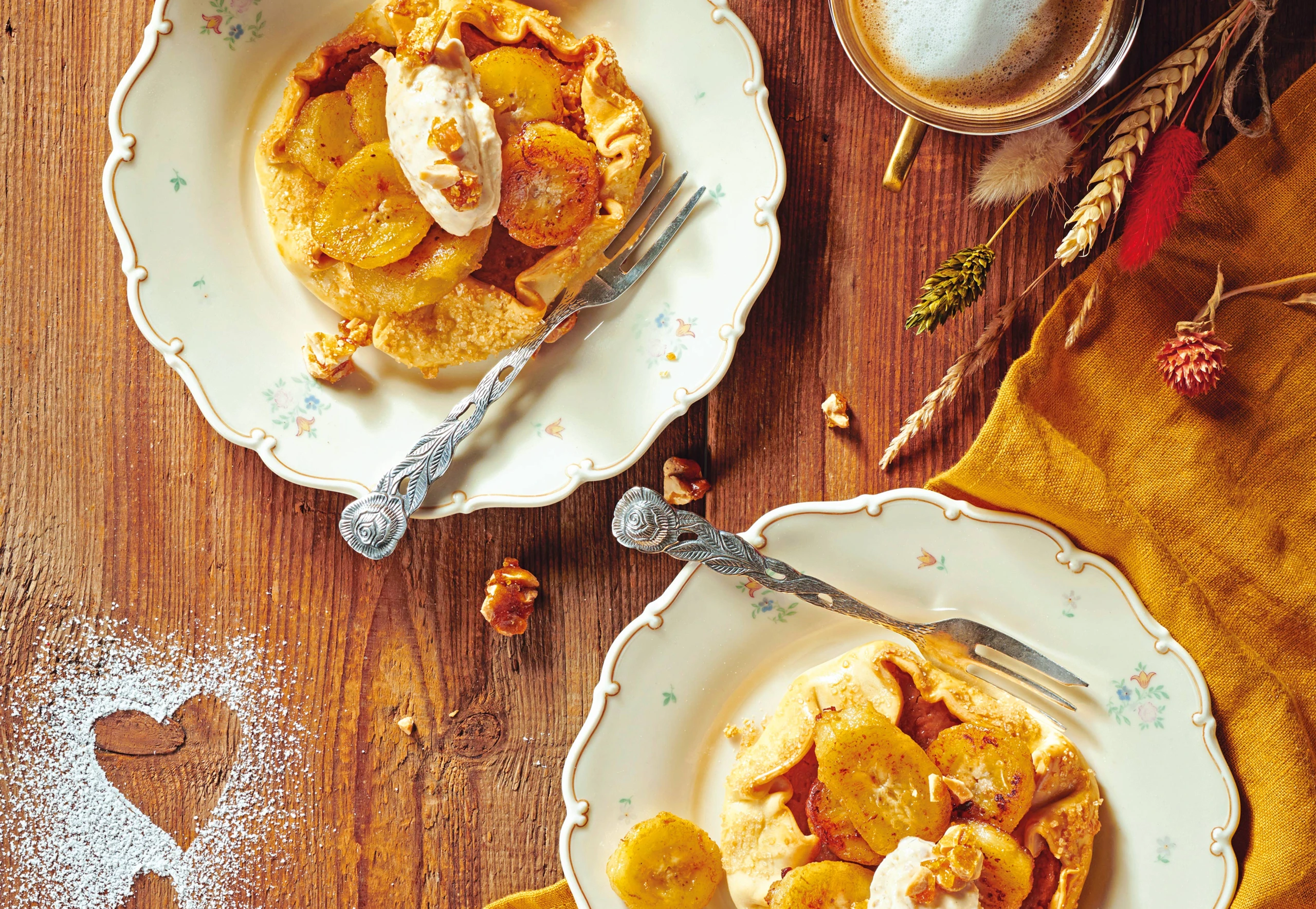 Banoffee-Flammküchlein mit Erdnusskrokan-Eis