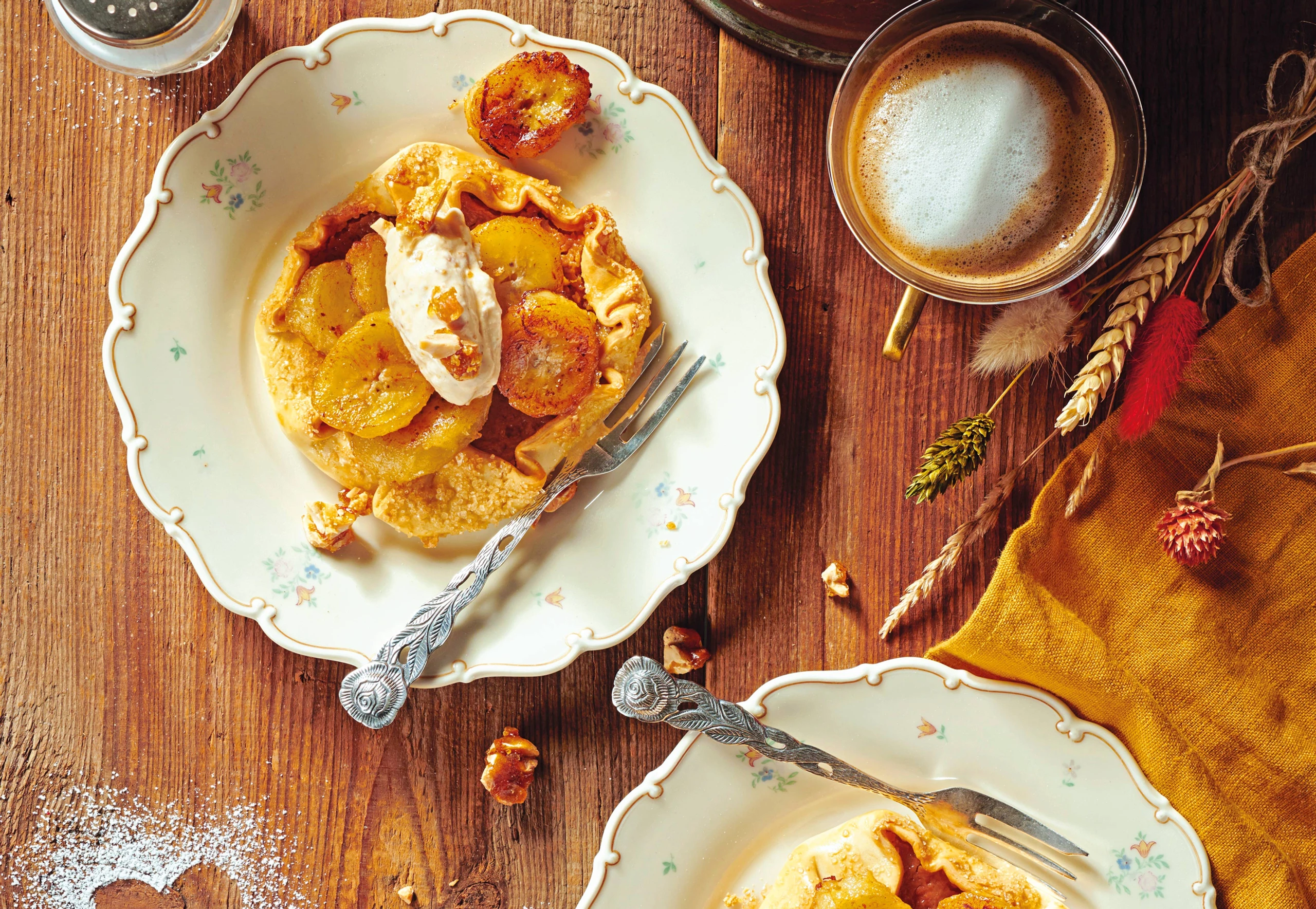 Banoffee-Flammküchlein mit Erdnusskrokant-Eis