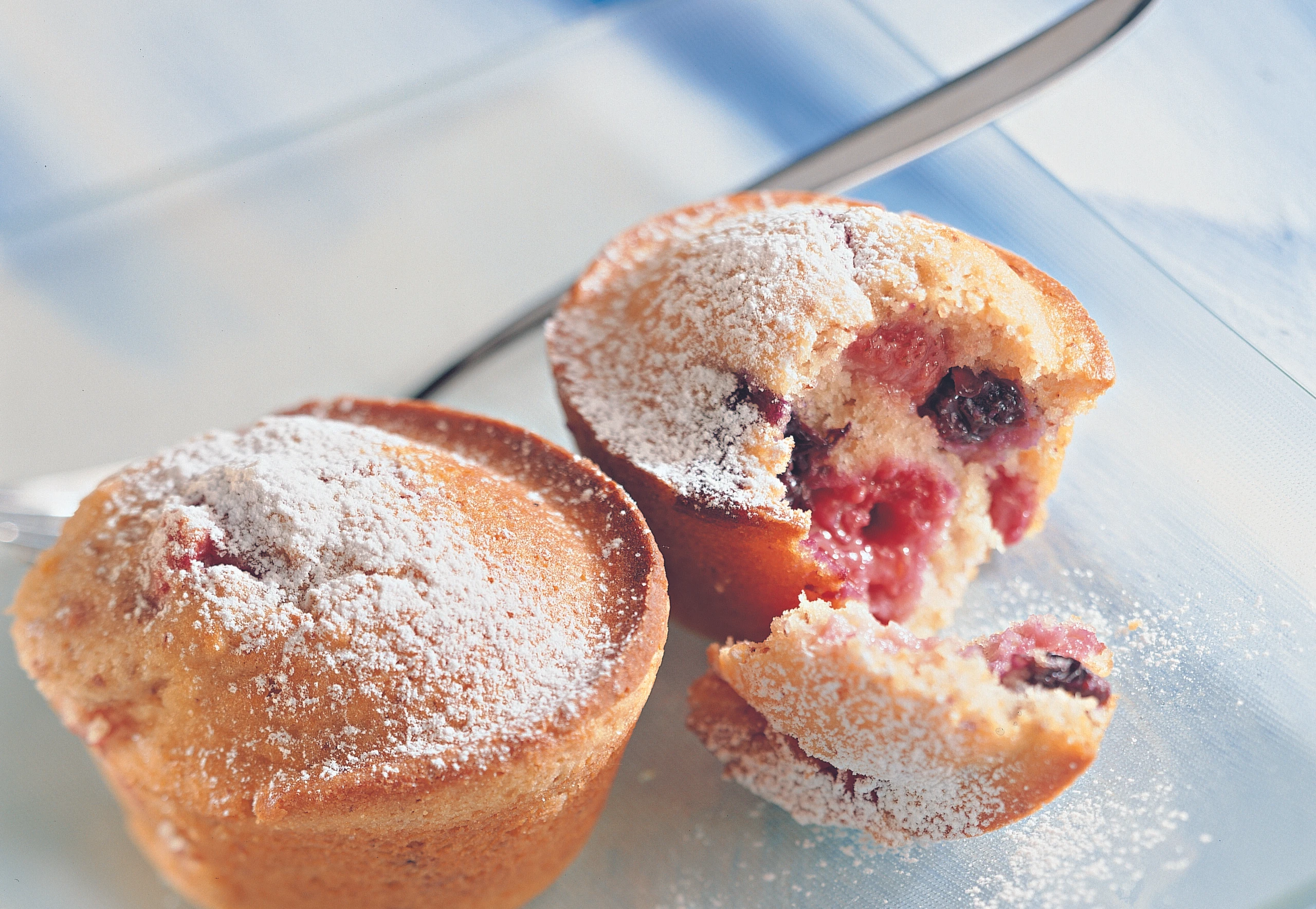Mehlmischung unterheben. Öl, dann Milch unter Rühren langsam einlaufen lassen. Beeren unterheben.