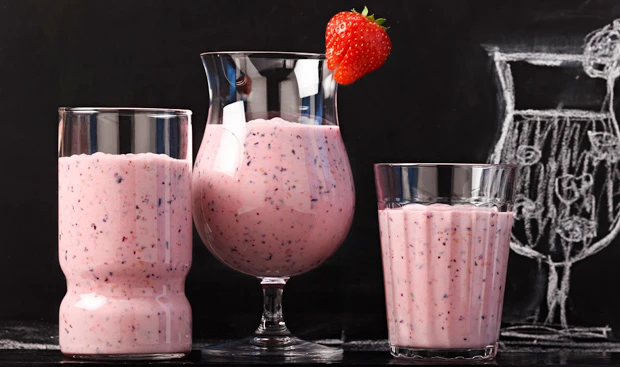 - Erdbeeren putzen, mit Heidelbeeren, Himbeeren, Limettenschale, Joghurt, Milch und Zucker vermischen und im Kutter oder mit dem Stabmixer fein pürieren. Smoothie in Gläser füllen.