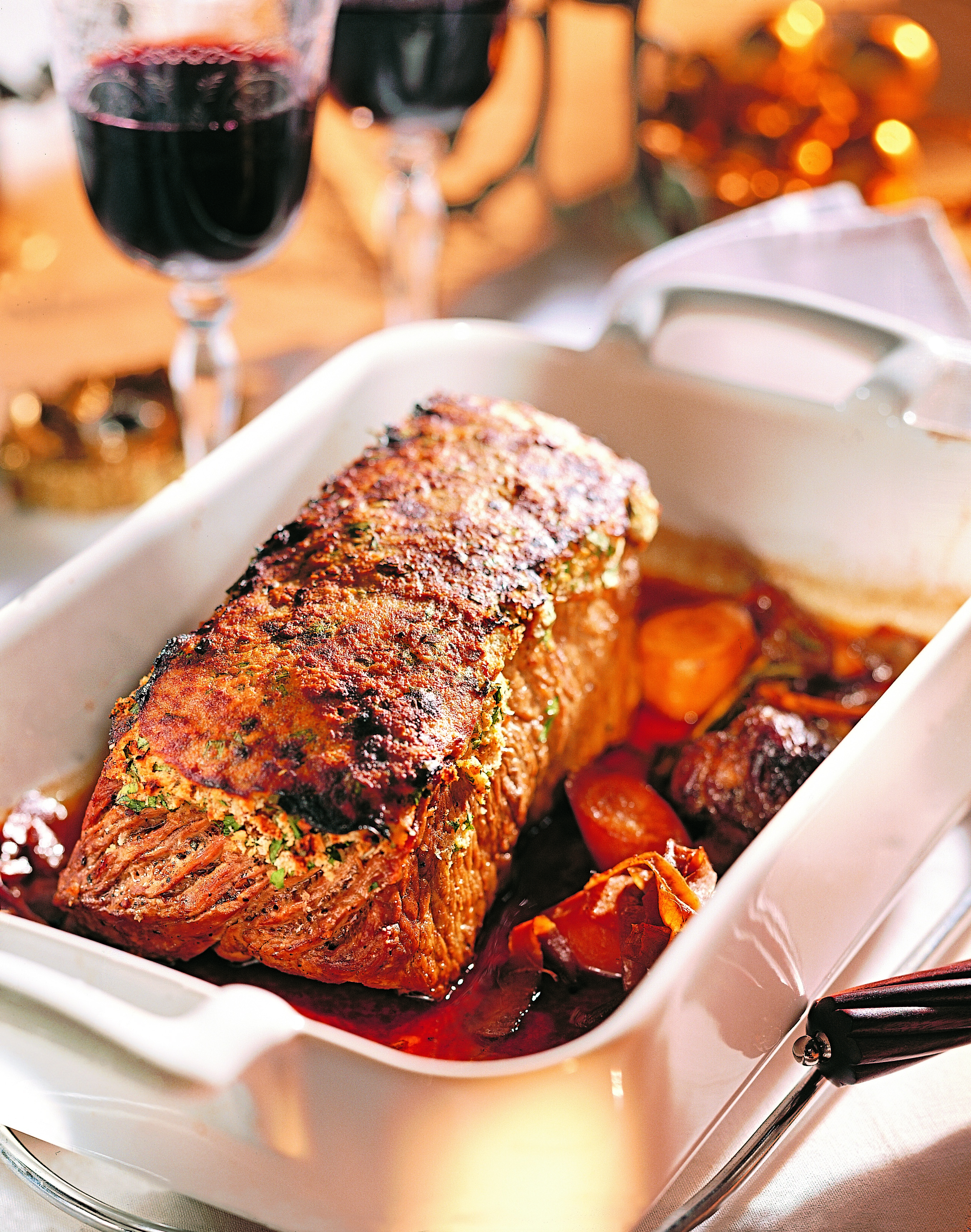 Backrohr auf 180 °C vorheizen. Die Beiried im Rohr 15–20 Minuten braten, bis die Kruste knusprig braun ist.