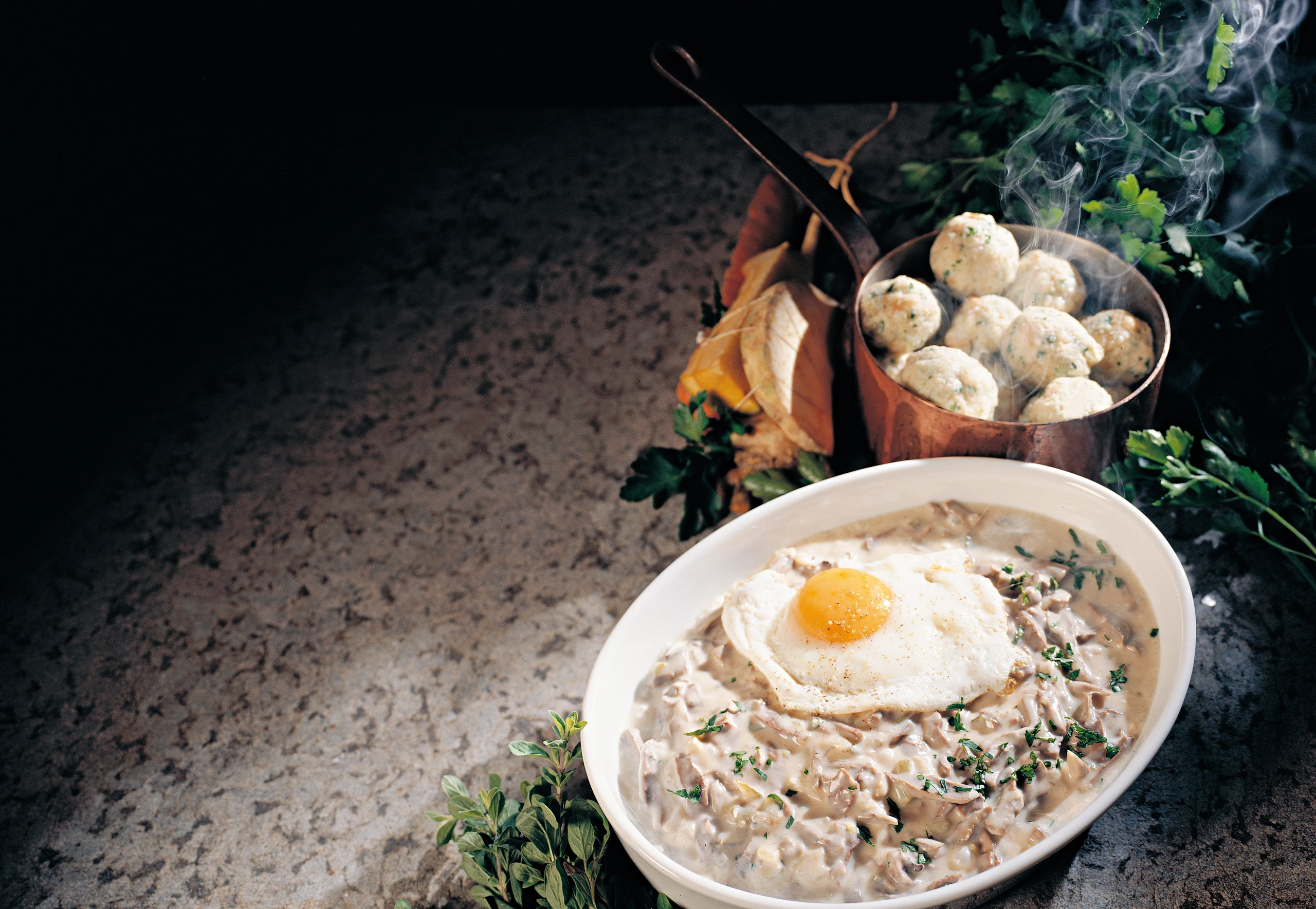 - Geschnittenes Beuschel und Herz zugeben und auf kleiner Flamme ca. 1/4 Stunde ziehen lassen. Petersilie fein hacken und vor dem Servieren einrühren. Beuschel mit Spielei (eventuell auch aus Wachteleiern) garnieren. Als Beilage serviert man am besten Semmelknödel oder Kräuterknöderln.
