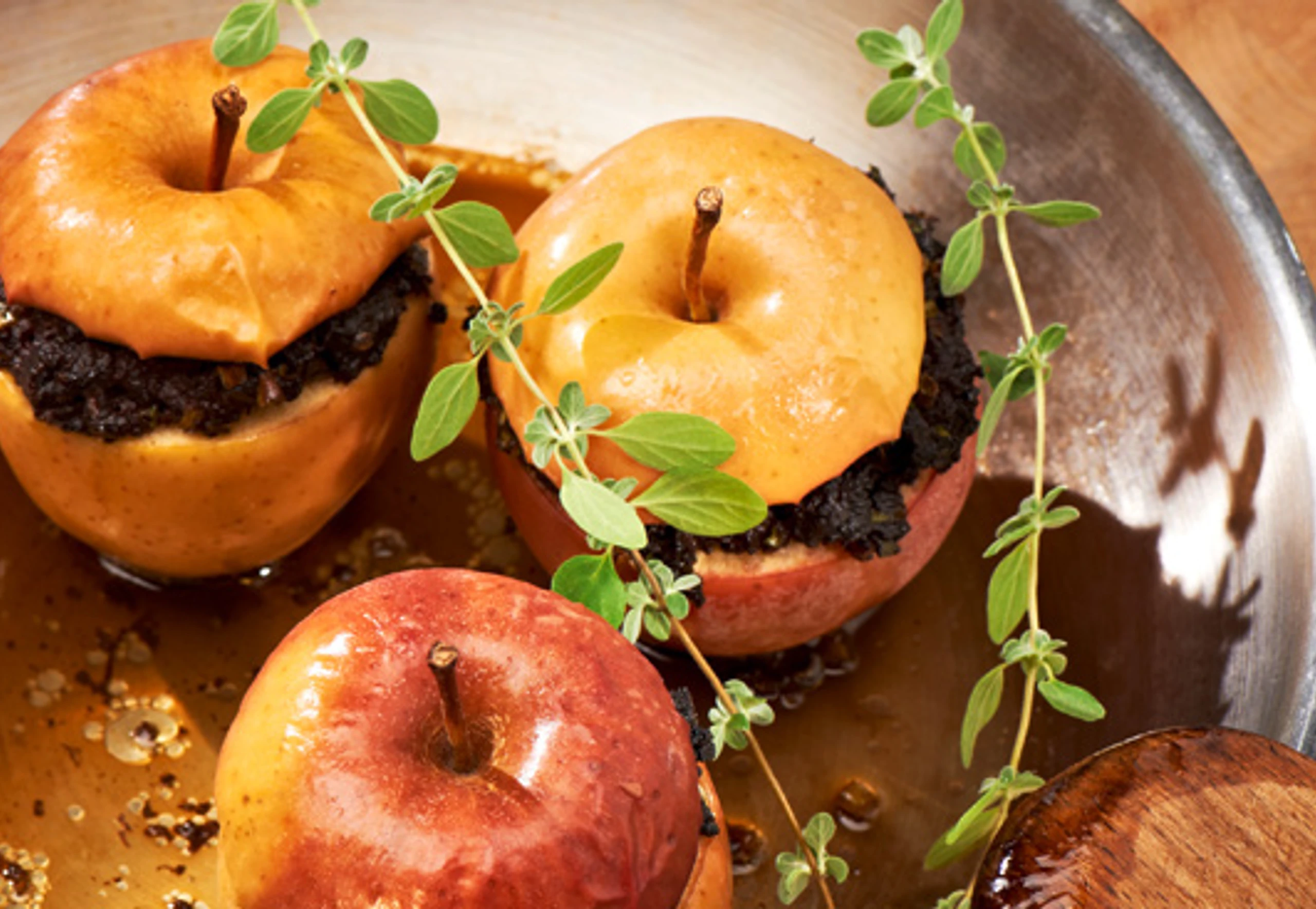 Äpfel innen mit wenig vom Bier beträufeln und mit der Blutwurstmasse füllen. Deckel darauf setzen.
